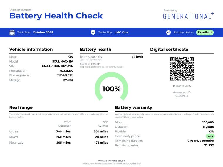 Introducing the Kia Soul Soul Maxx EV 5dr, a stylish and eco-friendly vehicle that is sure to turn heads on the road. With only 27620 miles on the clock and just 1 previous owner, this car is in excellent condition and ready for its next adventure.