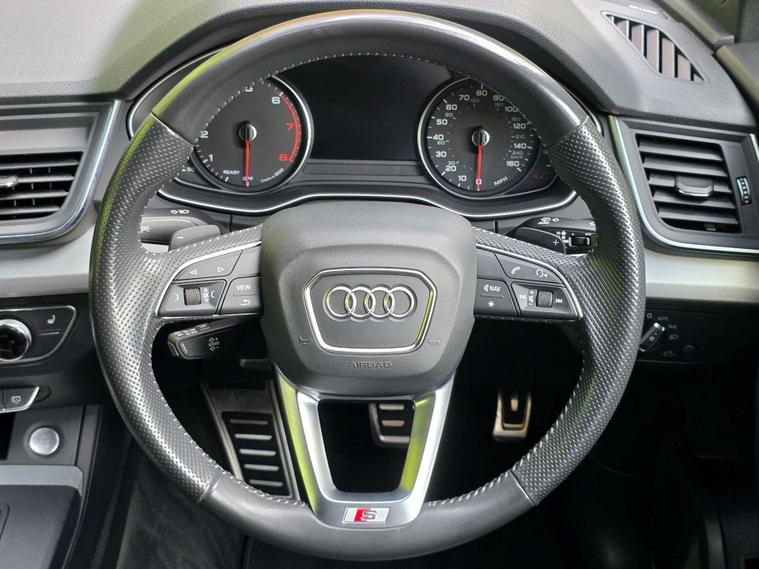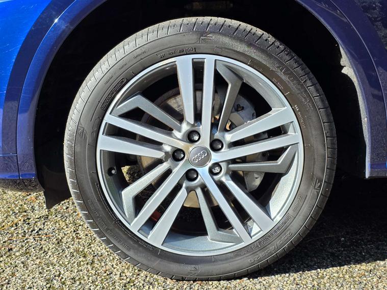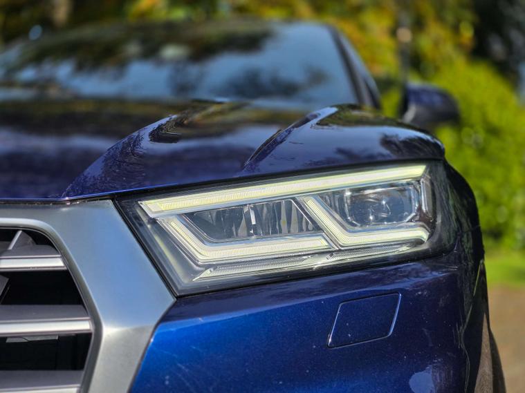 This 2018 Audi Q5 TFSI S line boasts a clear vehicle history, offering you peace of mind. This four wheel drive model features a 2.0 litre petrol engine and meets Euro 6 emissions and ULEZ standards. It comes equipped with the Audi Parking System Plus, including front and rear sensors, and a Light and Rain Sensor that automatically activates the headlights. Inside, you'll find heated front seats for added comfort and a Bluetooth interface for seamless connectivity. The striking LED headlights are complemented by LED rear lights and dynamic rear indicators.