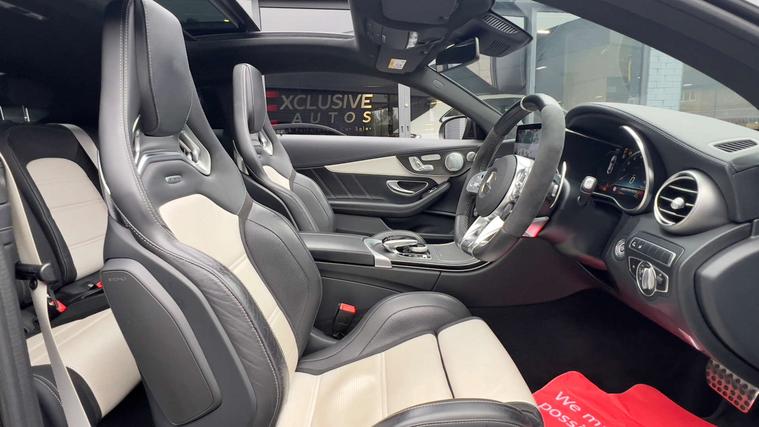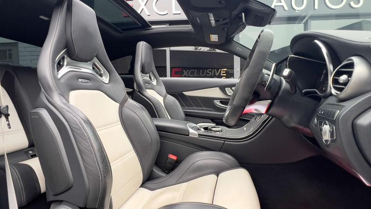 01923532492 + TWO TONE BLACK & WHITE AMG PERFORMANCE BUCKET SEATS + CARBON BODYKIT + PANORAMIC GLASS SUNROOF + DIGITAL DASH COCKPIT + 20" ALLOYS + LOWERED + KEYLESS ENTRY/ PUSH START BUTTON + 360 CAMERAS + BURMEISTER SOUND SYSTEM + HEATED ELECTRIC SEATS + AMG SPORTS EXHAUST + LEATHER / ALCANTARA STEERING + DRIVER MODES VIA STEERING WHEEL + ELECTRIC FOLDING MIRRORS + ARM RESTS + DIGITAL DUAL CLIMATE CONTROL + BLACKOUT EXTERIOR STYLING + PRIVACY GLASS WINDOWS + BLACK BADGES + DRL LIGHTS