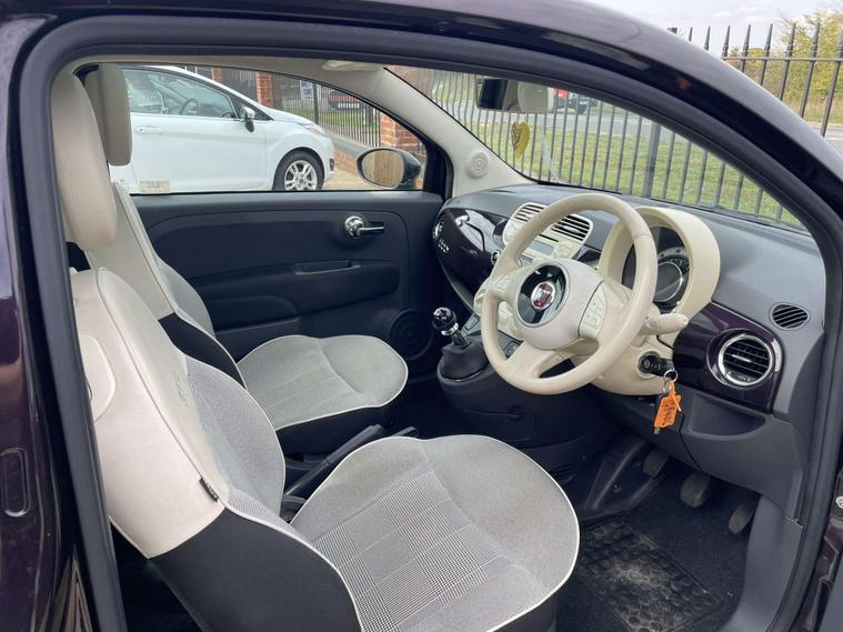 We are very happy to offer for sale this lovely Fiat 500 1.2 Lounge with just 32, 000 miles on and a full service history with 9 services in the book! This car has had just one owner from new and is finished in the rare optional colour of Chillout Purple so it is sure to stand out wherever you park it! Being a Lounge car you get all the usual refinements such as the panoramic roof, steering wheel controls and air conditioning. This 500 is not one to be missed! Give us a call now on 01206493571 to arrange a viewing and avoid disappointment!