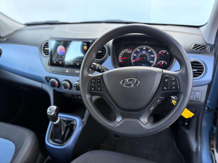 Dressed in a striking Morning Blue finish, this Hyundai I10 is sure to turn heads wherever you go. The interior complements its exterior with a tasteful Cloth - Blue upholstery, creating a seamless and sophisticated look.