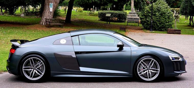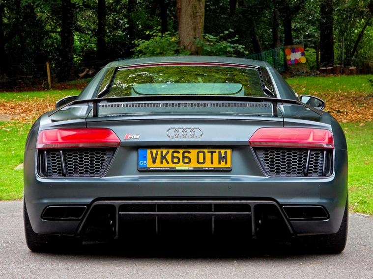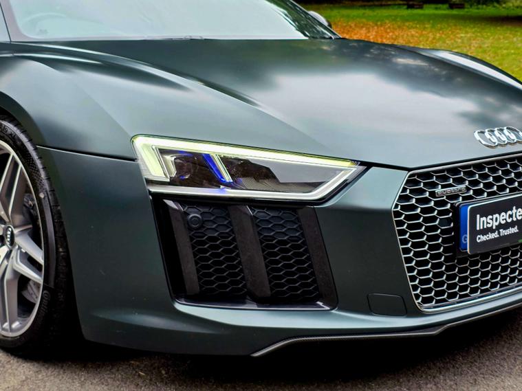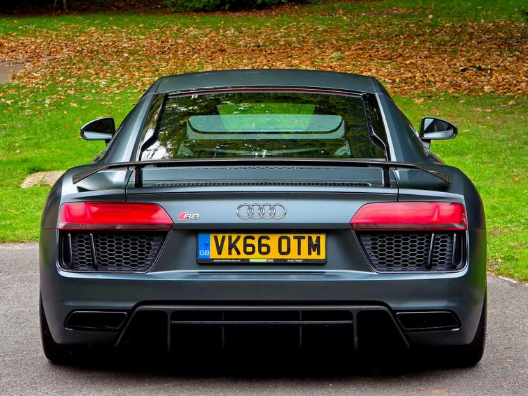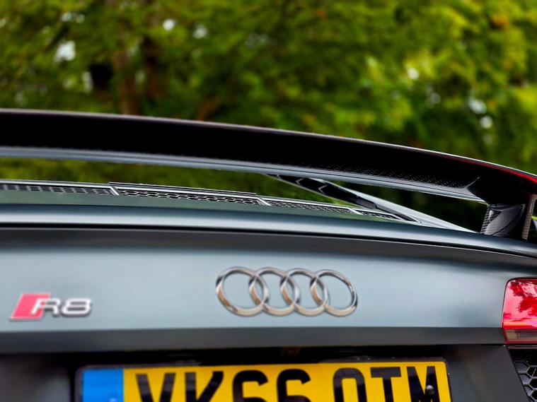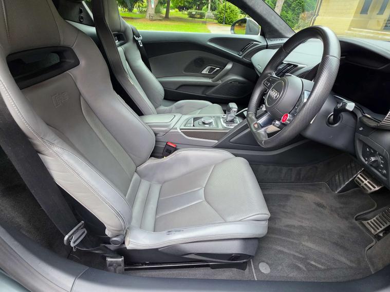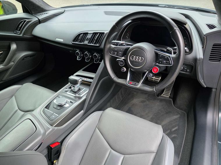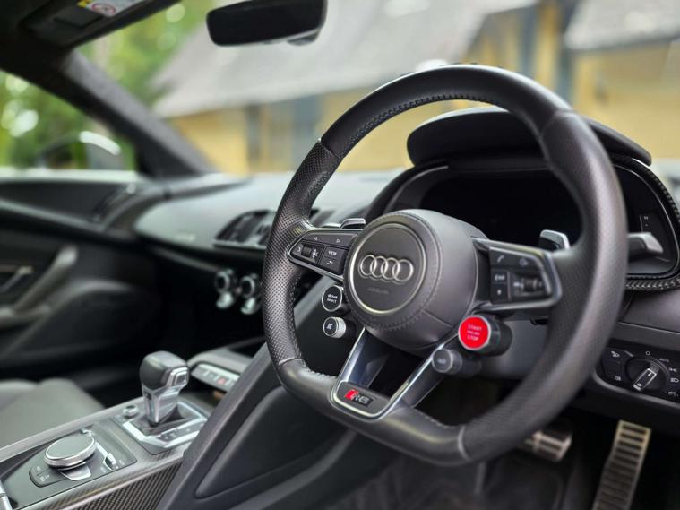 Sport plus package gives it performance upgrades like ceramic brakes, R8 bucket seats, a fixed CFRP rear spoiler (on the Coupe), and a gloss carbon exterior package.