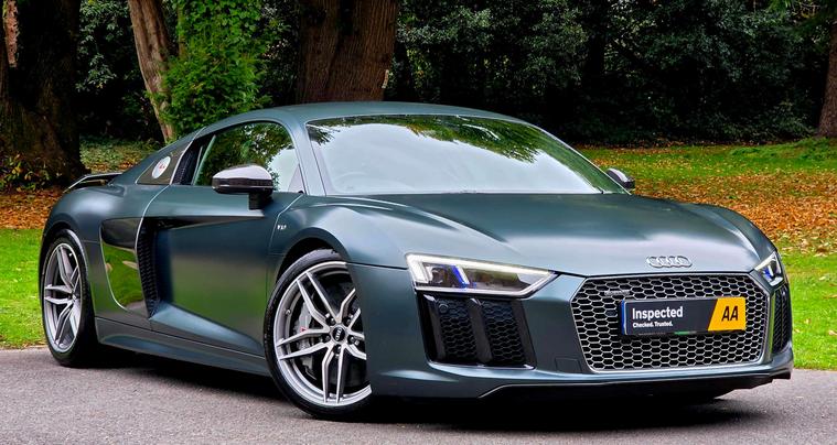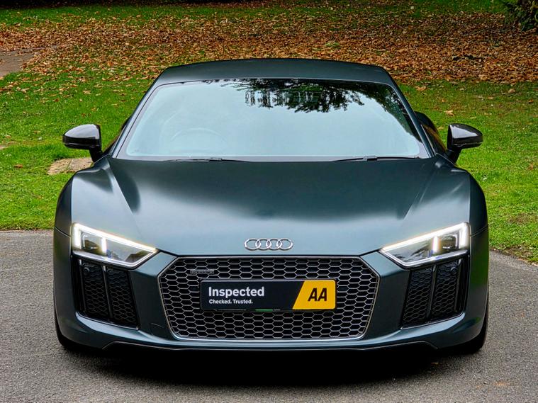 What an absolutely stunning example of the incredible V10 R8!! Finished in the gorgeous Audi Exclusive Camouflage Green with Carbon exterior and interior, Alcantara headlining with stitched diamond design, Fine Nappa leather sport seats and 19 inch alloys! HUGE SPECIFICATION with over £20, 000 of extra's!