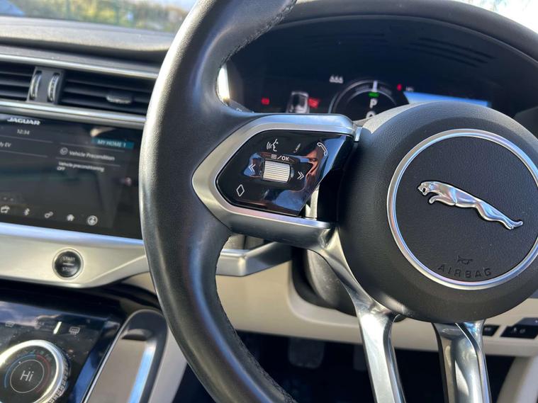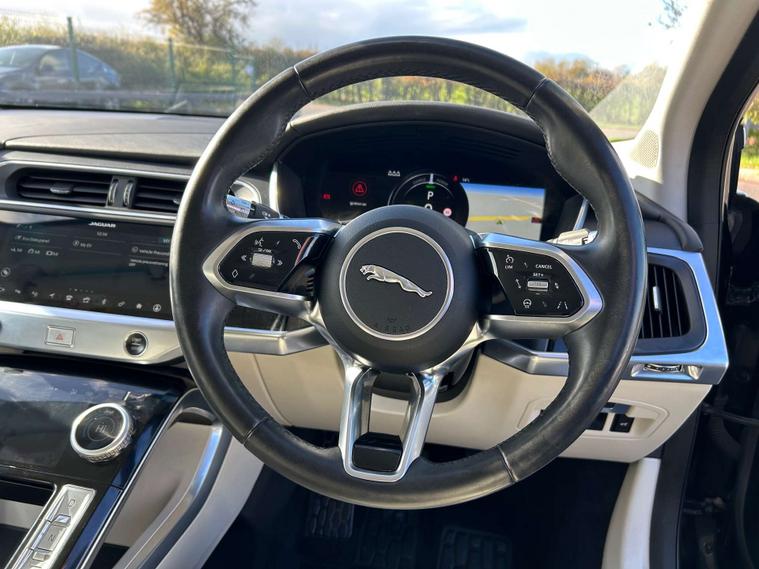 This 2020 Jaguar I-PACE 400 HSE is presented with a clear vehicle history check, offering peace of mind for its next owner. As a fully electric vehicle, it boasts a substantial 90 kWh battery, providing an impressive maximum range of 284 miles when new. This Four Wheel Drive model combines sophisticated design with advanced technology, featuring a Meridian 3D Surround Sound System for an immersive audio experience, a Head Up Display to keep your eyes on the road, and a Heated Steering Wheel for added comfort. The HSE trim ensures a premium feel throughout, complemented by 2 Zone Climate Control and Front and Rear Parking Aid for effortless manoeuvring.