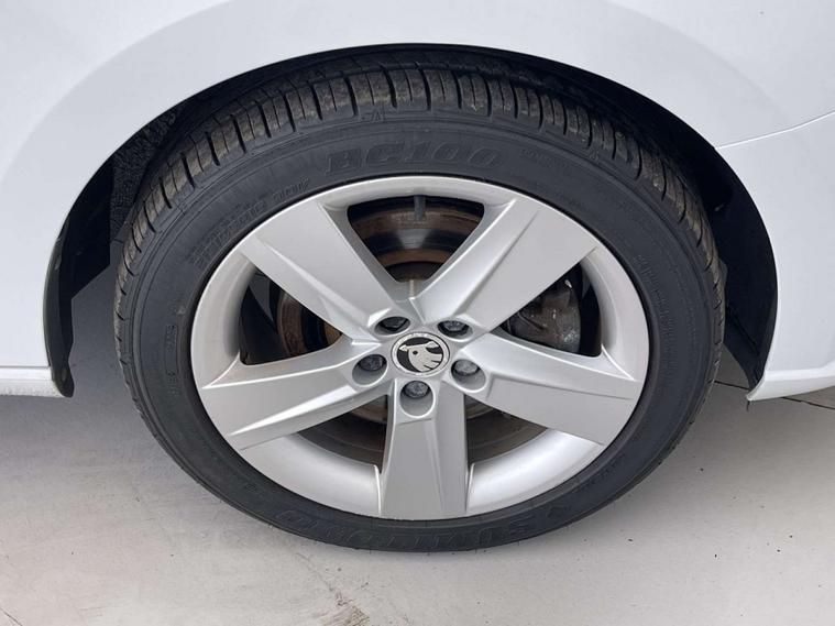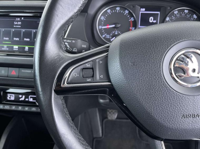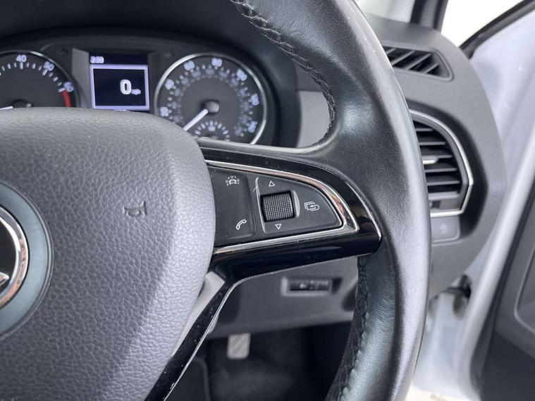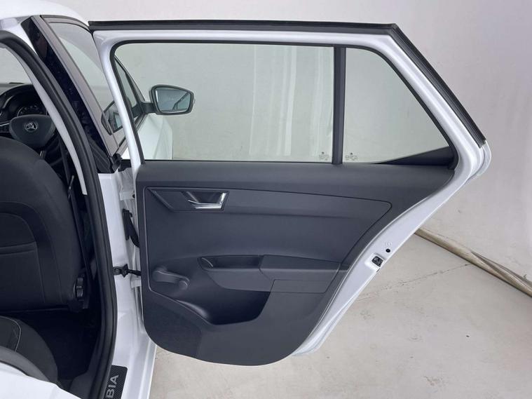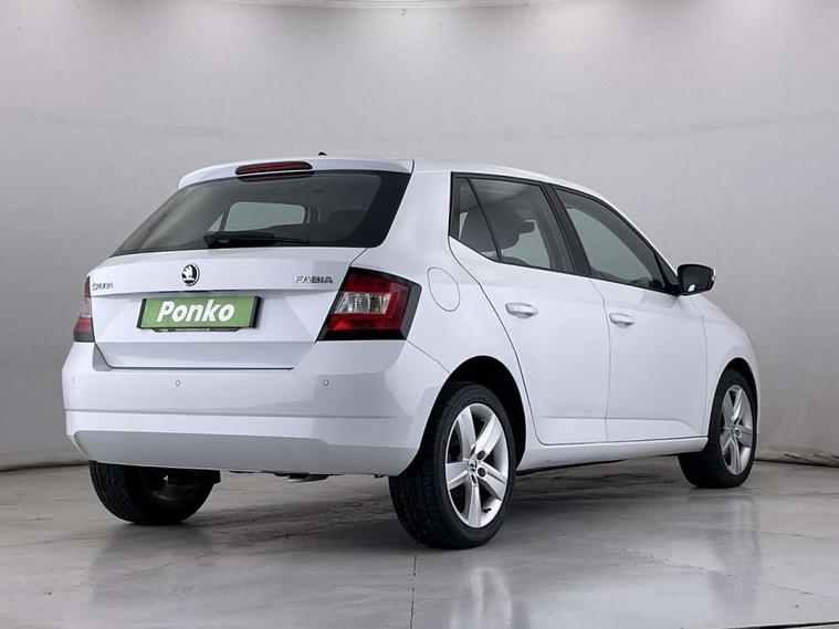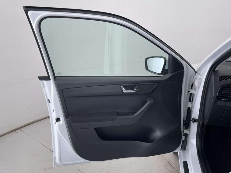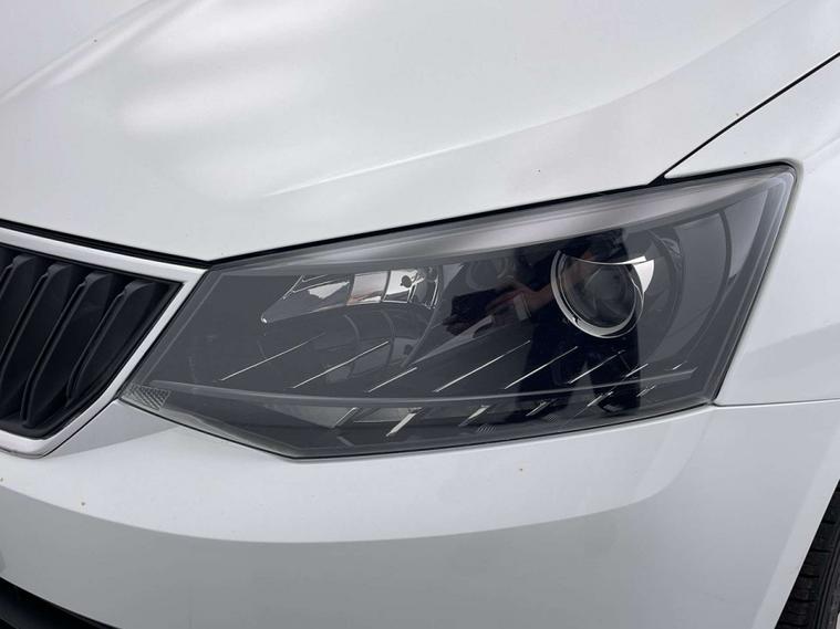 Finished in a sleek White exterior, the Skoda Fabia boasts a modern and sophisticated look. The interior features Onyx/Grey upholstery with a satin black cloth and black dashboard, creating a chic and comfortable driving environment.