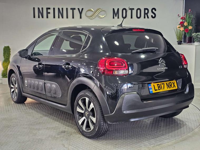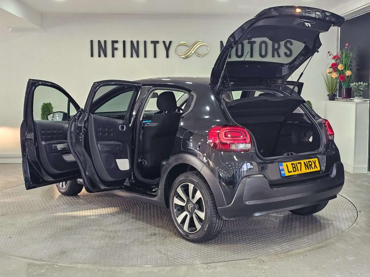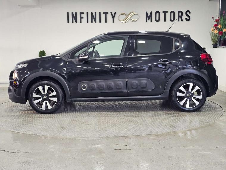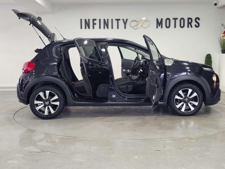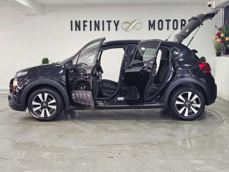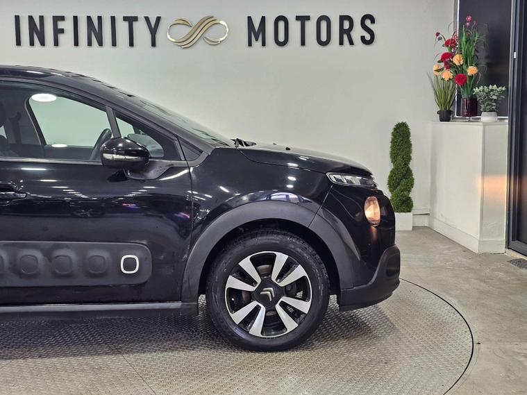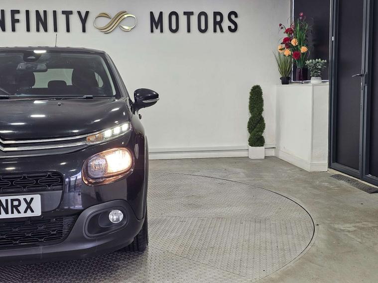 Infinity Motors presents to you the Citroen C3 - a stylish and practical hatchback that is sure to turn heads wherever you go. This particular model, the Citroen C3 1.2 C3 Flair PureTech 5dr, is a true standout with its sleek black finish.