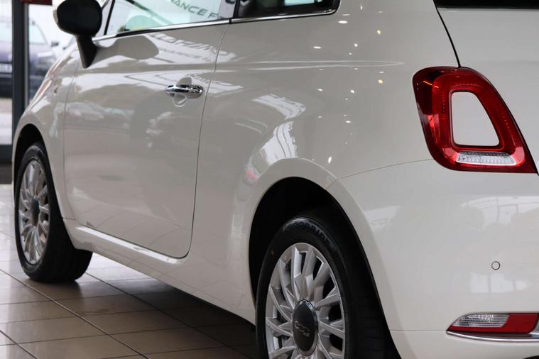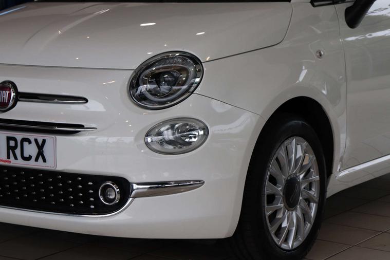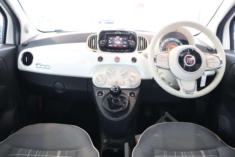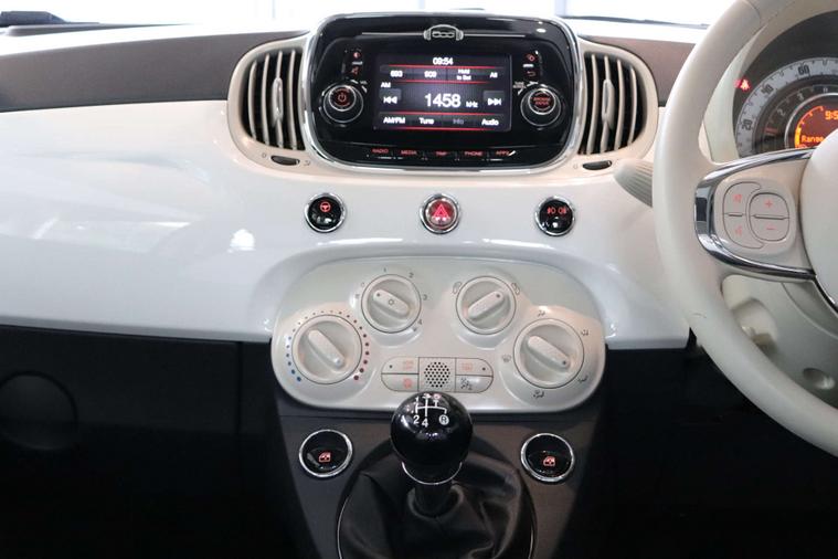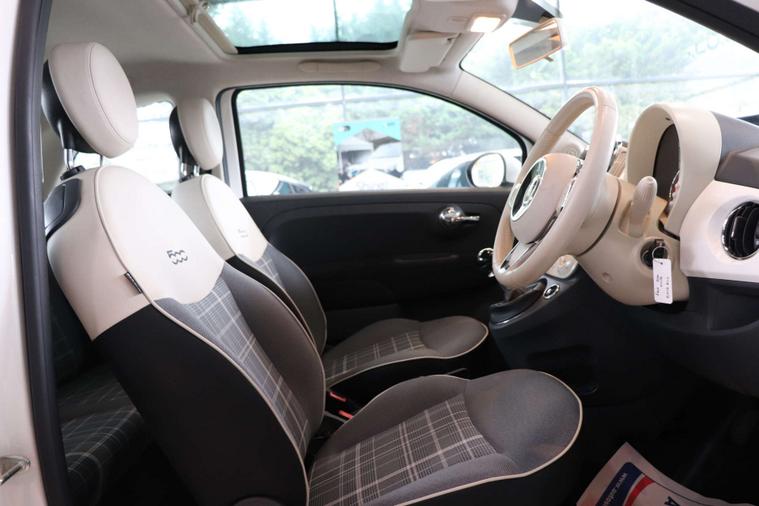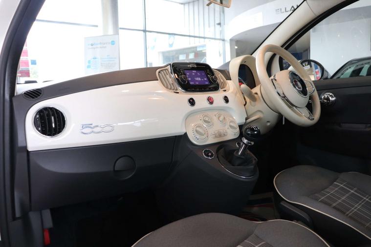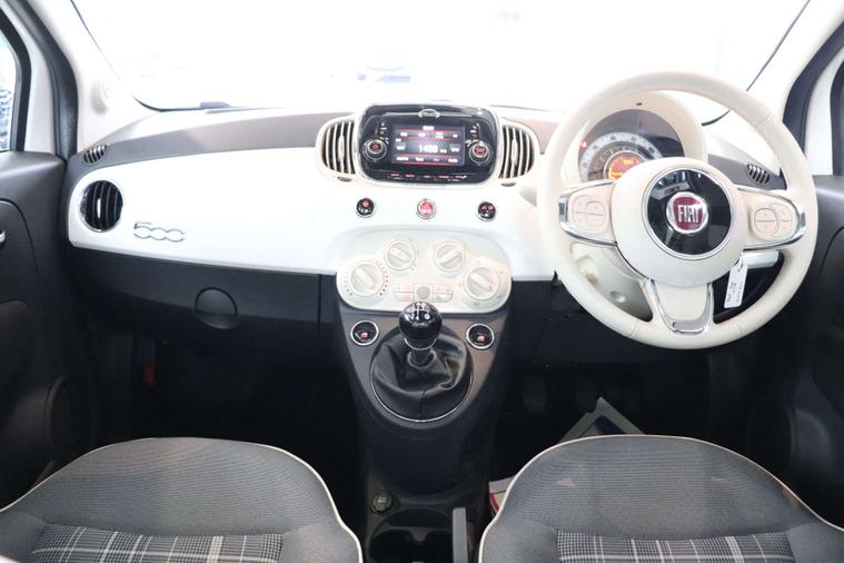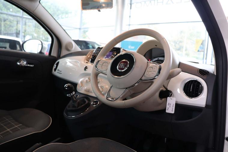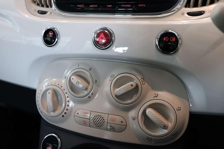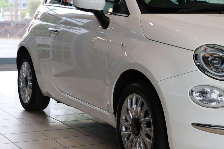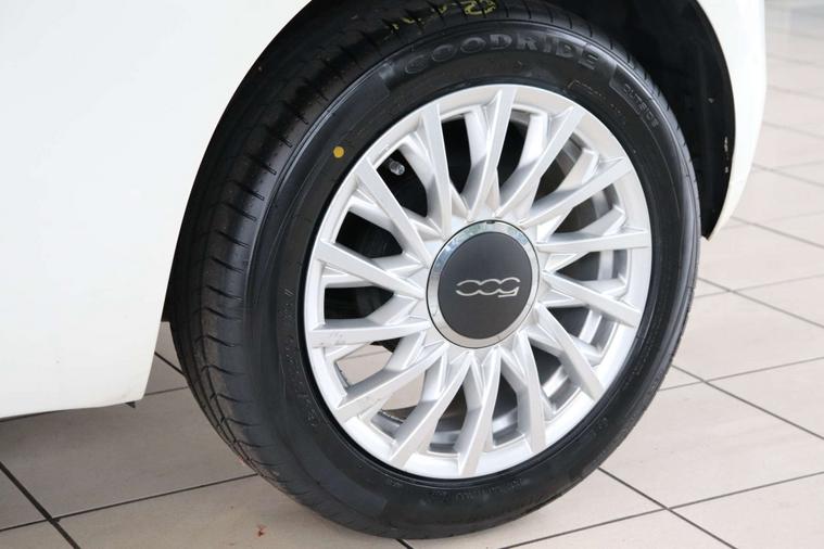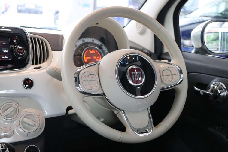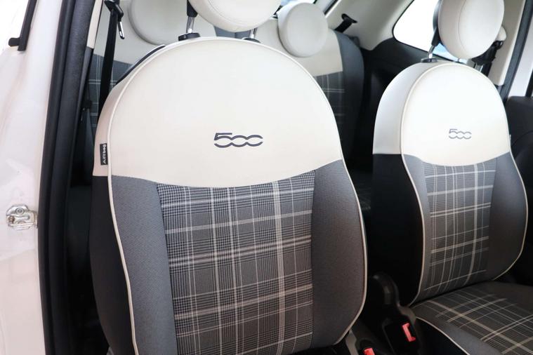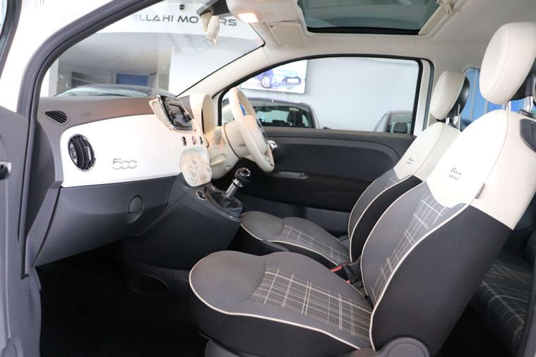 This particular model comes with some fantastic extras, including a luxurious Cloth interior in Black-Light Grey-Ivory with Ivory Ambience, giving the cabin a sophisticated and modern feel. The Bossa Nova White exterior adds a touch of elegance, making this Fiat 500 a true standout on the road.