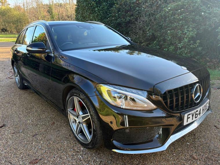 Introducing the stunning Mercedes-Benz C-Class 2.1 C220 AMG Line Bluetec Auto 5dr in sleek Black. This luxury vehicle is the epitome of style, sophistication, and performance.