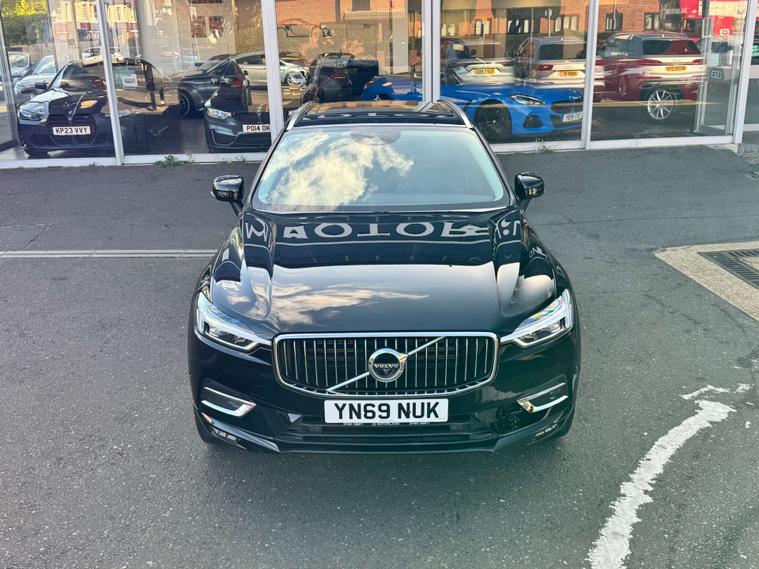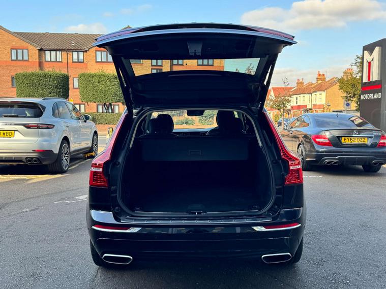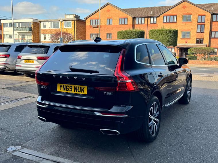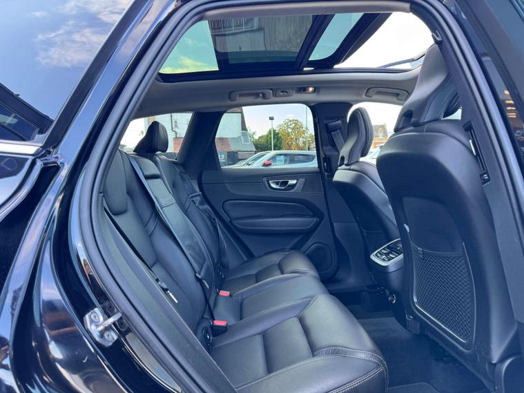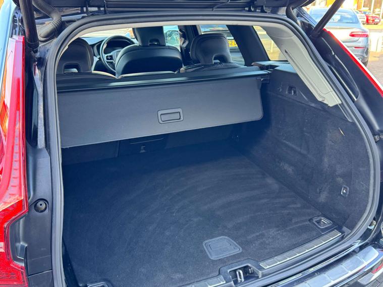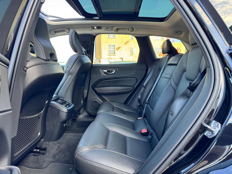 Finished in a sleek Onyx Black, the Volvo XC60 commands attention on every road. Its striking exterior is complemented by dark tinted windows on the rear side doors and cargo area, offering both privacy and a touch of mystery.