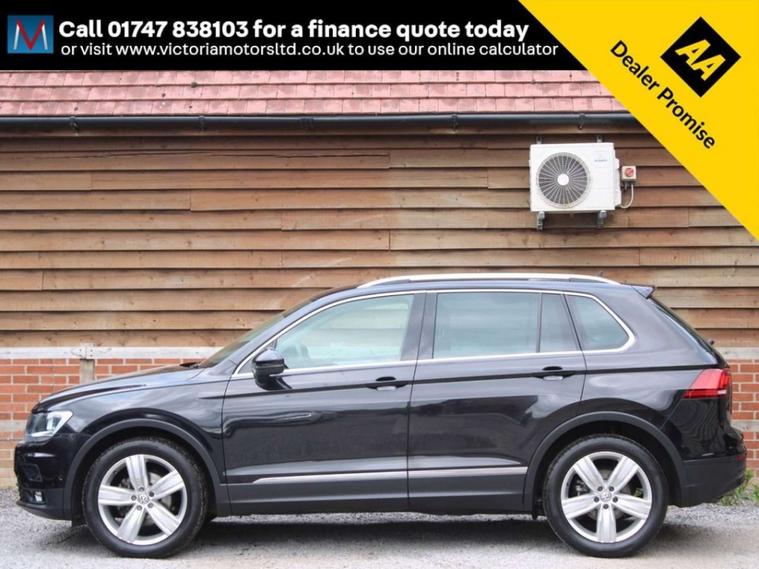 ***FOR VIEWINGS AND TEST DRIVES CALL US ON 01747692736 TO BOOK AN APPOINTMENT***Low mileage Tiguan automatic fitted with VW's 2.0 turbo diesel Euro6 ULEZ compliant engine producing an impressive 50 mpg combined finished in black metallic with specification including rear parking camera, media unit with satellite navigation and DAB radio, bluetooth, media connections, air conditioning, auto lights, cruise control, alloy wheels, roof rails and more, 1 owner, only 30000 miles, service history, high up driving position with easy access in and out of the cockpit as well as loads of boot space with the seats up and down***PART EXCHANGE AVAILABLE***USE THE FINANCE CALCULATOR ON OUR WEBSITE dealer's website AND QUOTE YOURSELF A MONTHLY PAYMENT FIGURE TODAY WITH ZERO DEPOSITS AVAILABLE***