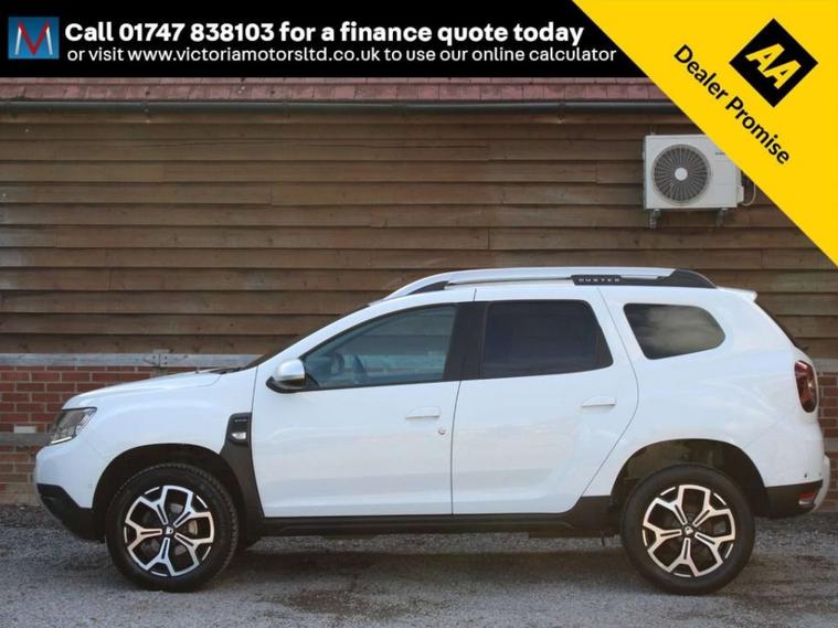 ***FOR VIEWINGS AND TEST DRIVES CALL US ON 01747692736 TO BOOK AN APPOINTMENT***Top spec four wheel drive Duster fitted with Dacia's 1.3 turbo petrol ULEZ compliant engine with great power and economy finished in white with equipment including heated seats, touch screen media unit with satellite navigation, parking sensors and parking camera, apple carplay meaning you can mirror the apps from your phone onto the screen of your car such as Google maps and Spotify, bluetooth, auto air conditioning, auto lights, media connections, electric folding wing mirrors, cruise control, diamond cut alloy wheels, 1 owner, 27000 miles, service history, high up driving position with easy access in and out of the cockpit***PART EXCHANGE AVAILABLE***USE THE FINANCE CALCULATOR ON OUR WEBSITE dealer's website AND QUOTE YOURSELF A MONTHLY PAYMENT FIGURE TODAY WITH ZERO DEPOSITS AVAILABLE***