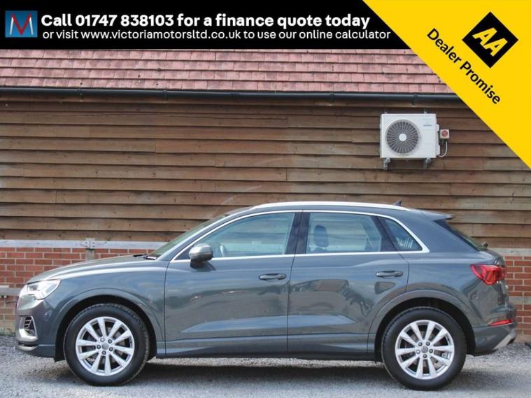 ***FOR VIEWINGS AND TEST DRIVES CALL US ON 01747692736 TO BOOK AN APPOINTMENT***Low mileage new shape Q3 fitted with Audi's 1.5 turbo petrol ULEZ compliant engine producing impressive power of 150 BHP and great fuel economy finished in grey metallic with equipment including media unit with satellite navigation, DAB radio and apple car play resulting in the ability to mirror the apps from your Iphone onto the car media screen including Google maps and Spotifiy, media connections, bluetooth, parking aid, auto air conditioning, auto lights, cruise control, electric opening and closing tailgate, alloy wheels and more, 41000 miles, service history, high up driving position with easy access in and out of the cockpit***PART EXCHANGE AVAILABLE***USE THE FINANCE CALCULATOR ON OUR WEBSITE dealer's website AND QUOTE YOURSELF A MONTHLY PAYMENT FIGURE TODAY WITH ZERO DEPOSITS AVAILABLE***