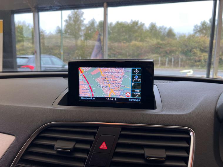 Equipped with a host of premium extras, this Audi Q3 ensures every journey is as comfortable as it is exhilarating. The heated, electrically adjustable, and folding door mirrors with auto-dimming on the driver's side offer convenience and safety, while the 19-inch alloy wheels in a 5-double-spoke off-road design add a touch of rugged sophistication.
