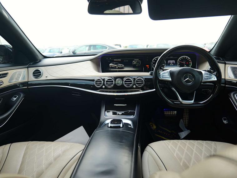Finished in a sleek Black exterior, this S-Class exudes sophistication and timeless elegance. Its commanding presence on the road is sure to turn heads and leave a lasting impression.