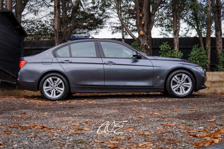 Finished in Mineral Grey, it features a Dakota Black Leather Interior with High-Gloss Black and Pearl Chrome Trim, creating a refined and modern cabin atmosphere. The iPerformance Exterior Styling Package enhances its sporty appearance while maintaining the elegant lines that define the 3 Series.