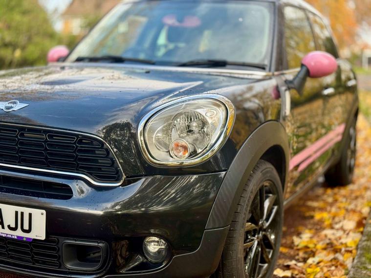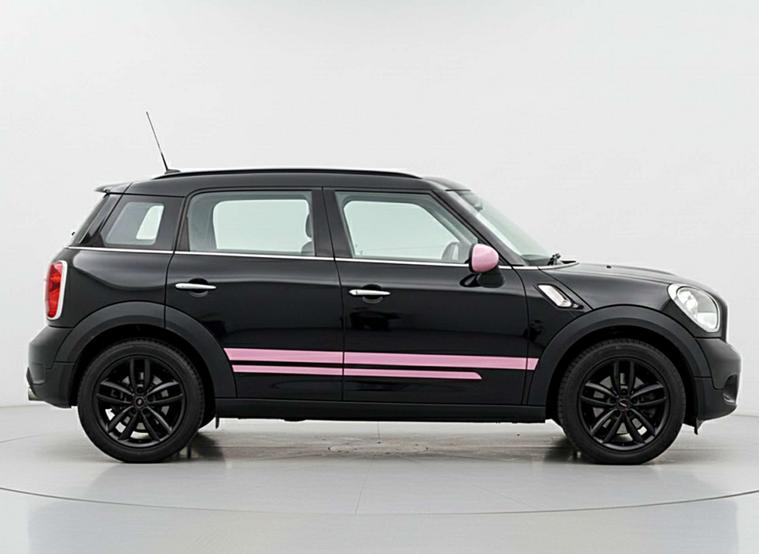 This is our stunning 2014 Mini Countryman 2.0 Cooper SD finished in Absolute Black with contrasting pink detailing and black cloth interior.