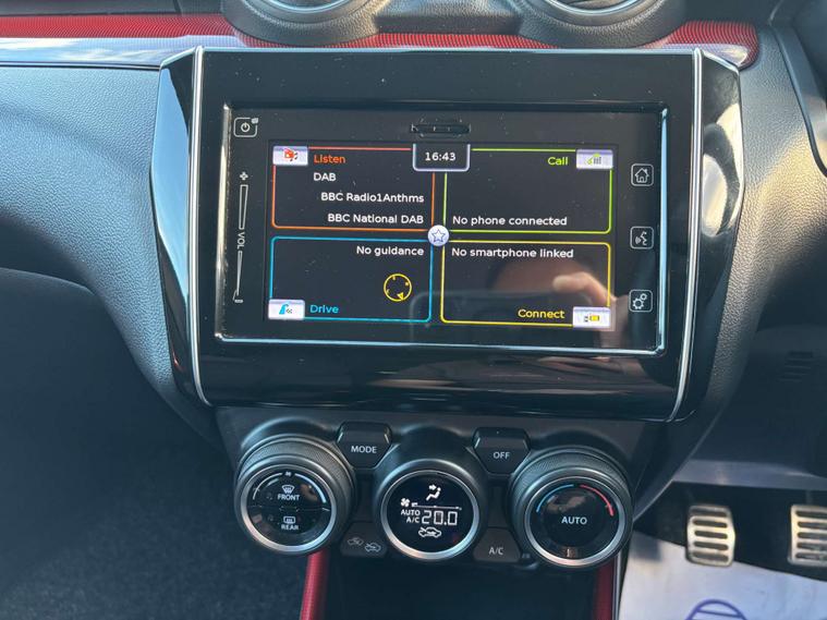 This Suzuki will be Supplied with a comprehensive unlimited Mileage 6 Month Warranty a used car check and new MOT. Plus we have just given it a full service. We offer Competitive Finance subject to status please call for a quotation or log onto our website to use our Finance Calculator. One owner from new with full Suzuki Service history. We are located in Cwmbran by appointment only, please call Chris to book your appointment now on 01594332475. It has cloth leather upholstery. Sport front seats. Touch screen Infotainment system with integrated Bluetooth phone, Satellite Navigation, Reversing Camera, DAB Radio/Aux sockets. Keyless Entry and Ignition. Multi-function steering wheel with Radar cruise control and speed limiter. Lane assist. Electric folding exterior wing mirrors. Automatic Air conditioning. Multi function computer. Rain sensing wipers. Newly Refurbished Santorini Black 17" alloy wheels. Rear privacy glass. Automatic LED Headlights. Great condition throughout. HPI Clear. Part Exchange Welcome. Please call Chris if you would like to view this Swift Sport on 01594332475