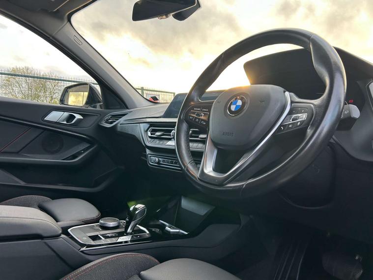 This 2022 BMW 1 Series 118i Sport is a superb example, having had only one owner from new and boasting a clear vehicle history check. This Euro 6 compliant model features a responsive 1.5 litre petrol engine and comes in the desirable Sport trim. You'll appreciate the convenience of LED headlights, automatic two zone climate control, and front and rear parking sensors to make manoeuvring effortless. Stay connected on the go with the Bluetooth hands free system and USB audio interface, all managed through the impressive BMW Live Cockpit Professional.