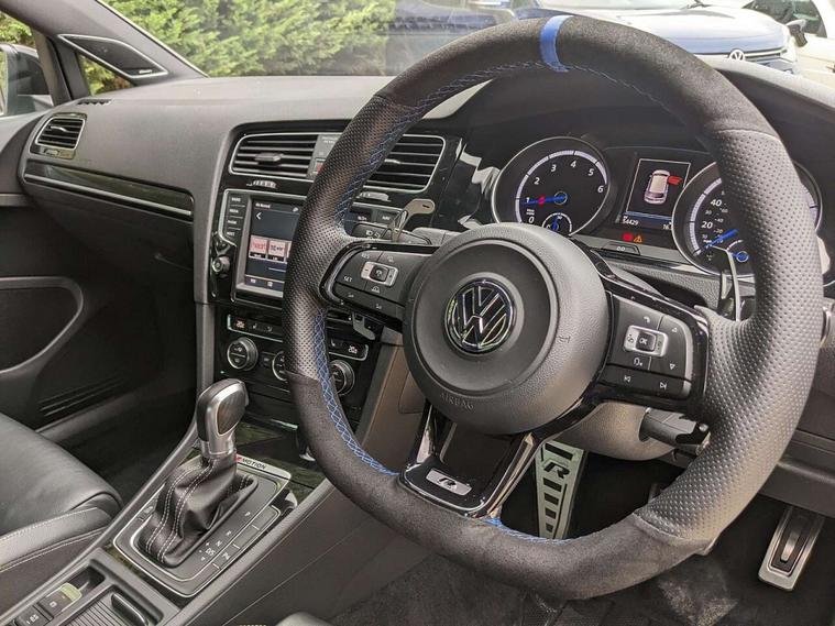12 Assured Vehicle. Presented in Pure White with Black Vienna leather upholstery. The Golf R with the DSG gearbox is a practical, high performance hot hatch. The car comes with an excellent specification including Apple CarPlay, Dynaudio Sound Pack, rear camera with front & rear parking sensors and a comprehensive service history. Please enquire for more details. Experian checked, nationwide delivery available. £149.00 Preparation Fee applies on purchase. Please enquire ahead of arrival, as much of our stock is kept off-site at our storage centre, and we would like ensure it is available to view during your visit.