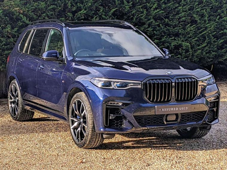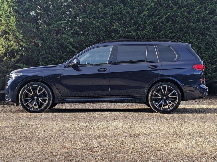 12 Assured Vehicle. Presented in Tanzanite Blue with Coffee/Black Merino leather seats. The BMW X7 is BMW's handsome luxury SUV, with this charming example including 7 seats, M Plus package, Panoramic Glass Sunroof, front & reversing camera, heated seats, satellite navigation, Bluetooth, plus much more. The car also comes with a comprehensive service history on the i-Drive. Please enquire for more details. Experian checked, nationwide delivery available. £149.00 Preparation Fee applies on purchase. Please enquire ahead of arrival, as much of our stock is kept off-site at our storage centre, and we would like ensure it is available to view during your visit.