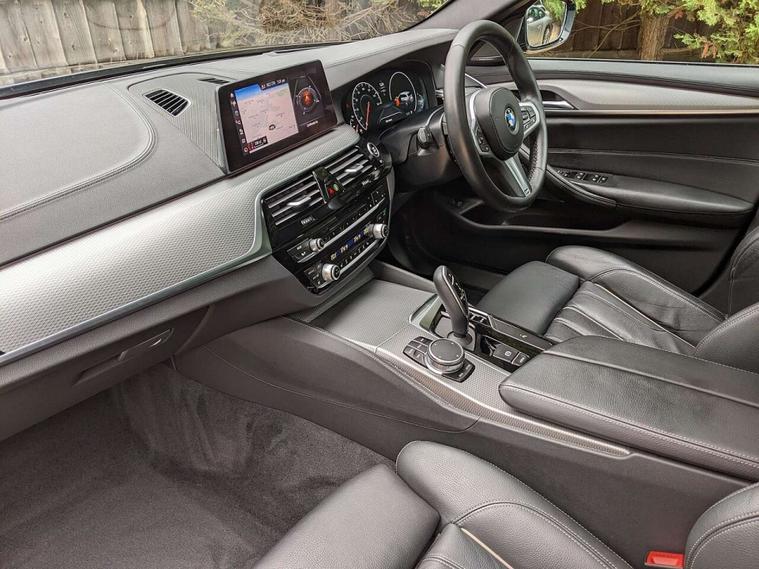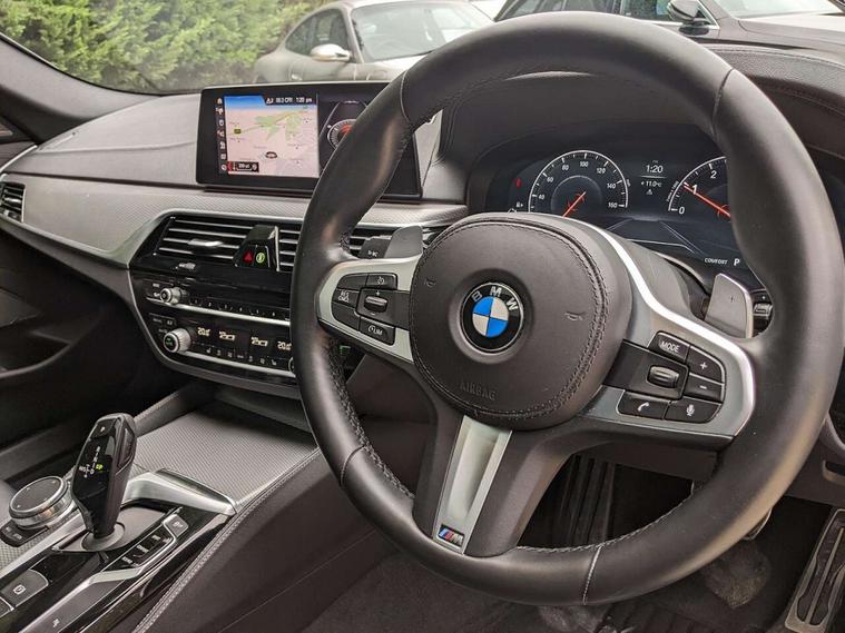 12 Assured Vehicle. Presented in Black Sapphire metallic with Black White Dakota leather upholstery. The BMW 5-Series is one of the most refinded and impressive cars on the market. BMW's astonishing xDrive all-wheel drive system means this is a vehicle capable of handling any weather, and effortlessly puts down all 335bhp provided by the 3.0 straight six under the bonnet. This vehicle has been provided with an excellent specification including M Sport Plus Package, Panoramic Glass Sunroof, Sat Nav, HUD, heated seats, parking camera, Bluetooth phone & media and 20' x M-Sport alloy wheels, Harmon Kardon, plus much more. Please enquire for more details. Experian checked, nationwide delivery available. £149.00 Preparation Fee applies on purchase. Please enquire ahead of arrival, as much of our stock is kept off-site at our storage centre, and we would like ensure it is available to view during your visit.