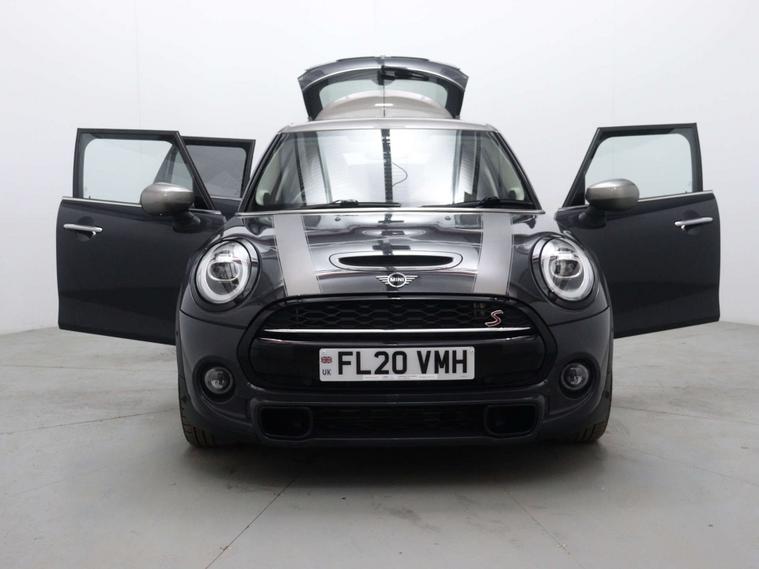 This Mini Hatch comes with a range of fantastic extras, including Bonnet Stripes in Silver, luxurious Chester Leather interior in Satellite Grey, Comfort Plus Pack for added convenience, Darkened Rear Glass for a touch of privacy, and a Harman Kardon Hi-Fi System for the ultimate driving soundtrack.