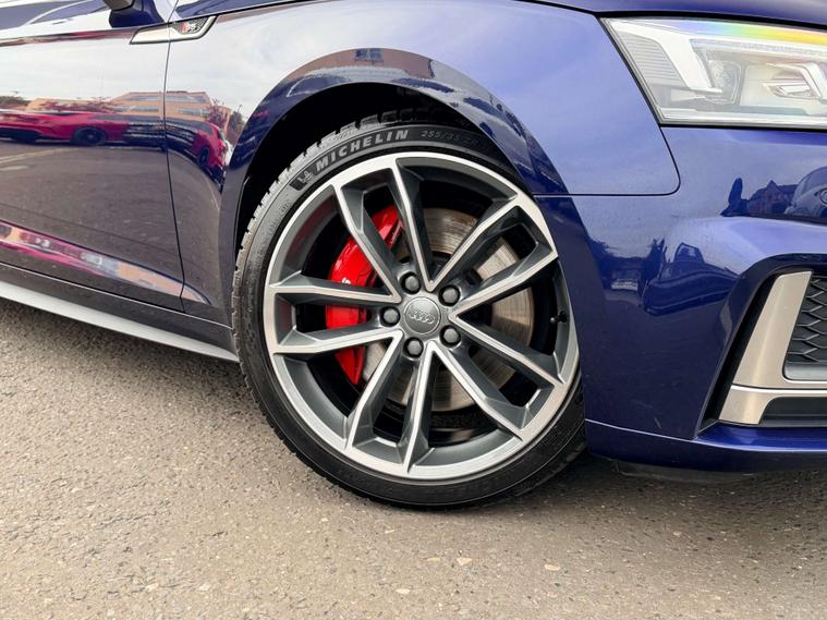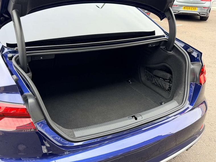 Finished in a striking Navarra Blue, the Audi A5 commands attention on every road. Its sleek silhouette is complemented by a host of premium extras that set it apart from the rest. The vibrant red brake calipers add a touch of sportiness, while the folding door mirrors and privacy glass enhance both convenience and style.