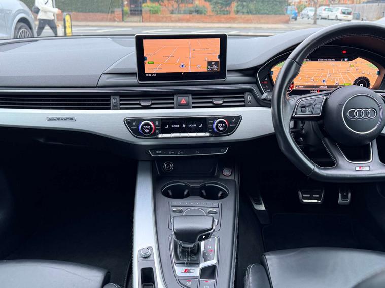 Step inside and be greeted by the Audi Virtual Cockpit, a state-of-the-art digital display that puts all the information you need right at your fingertips. The electrically adjustable front seats, complete with memory function for the driver's side, ensure that you find the perfect driving position every time. The interior is adorned with Fine Nappa Leather S Super Sport Seats, embossed with the iconic 'S' logo, providing both comfort and elegance in equal measure.