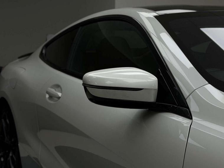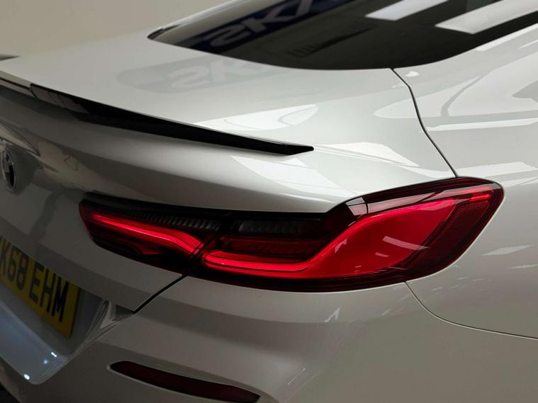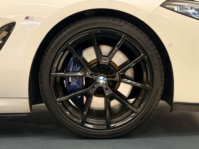 Finished in a stunning Mineral White, the BMW 8 Series exudes sophistication and elegance. Its sleek silhouette is complemented by the 20-inch M Light Y-Spoke 728M Jet Black alloy wheels, complete with run-flat and mixed tyres, ensuring both style and safety on every journey.