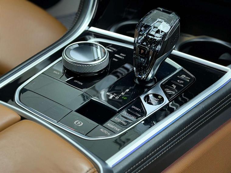 Step inside to discover the opulent BMW Individual Extended Merino Leather in a striking Cognac-Black combination. The interior is further enhanced by the BMW Individual High-Gloss Shadowline with Extended Contents and the Piano Black Interior Trim Finisher, creating an atmosphere of refined luxury.