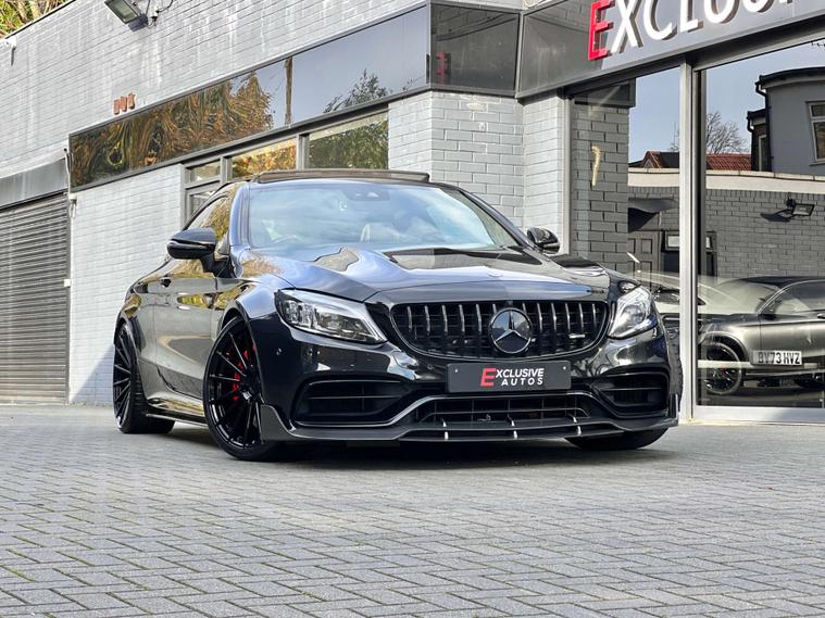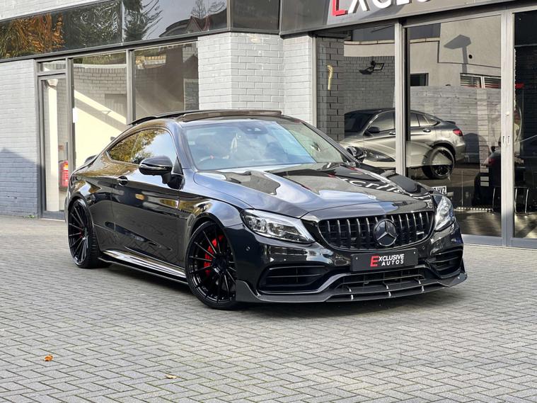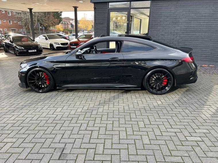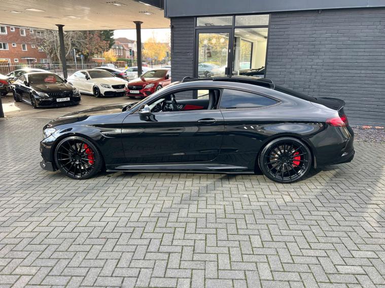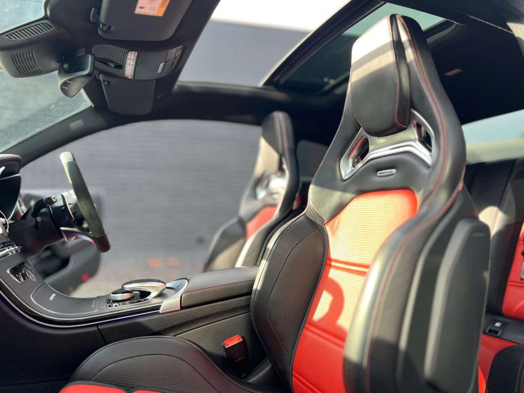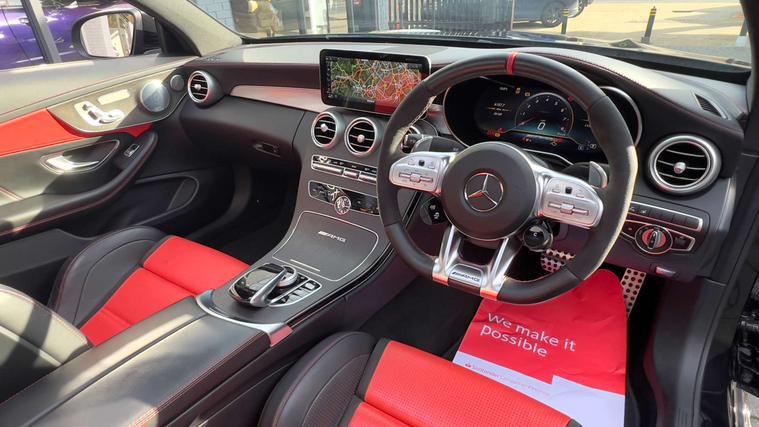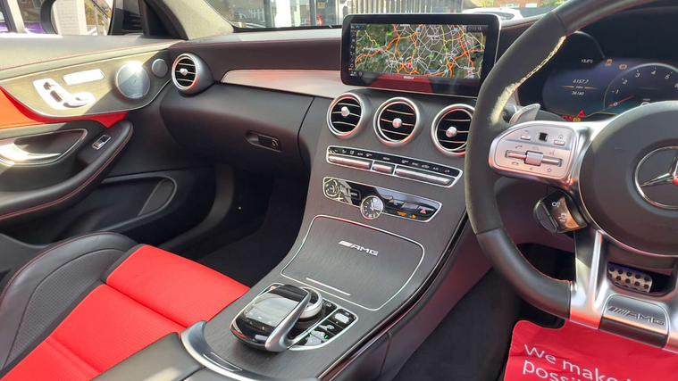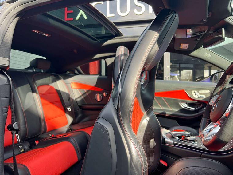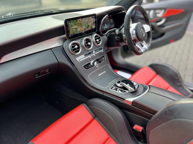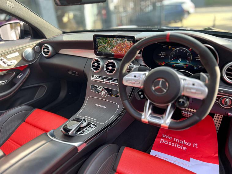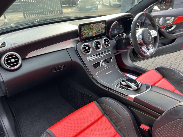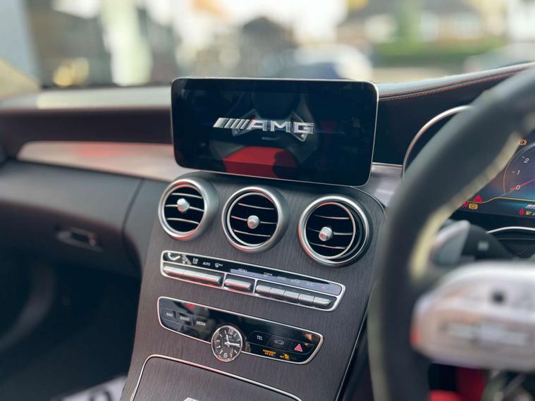 20" ALLOYS + LOWERED + AMG SPORTS EXHAUST + AMG PERFORMANCE BUCKET SEATS + 360 CAMERAS + RED / BLACK LEATHER + KEYLESS ENTRY PUSH START BUTTON + PANORAMIC GLASS SUNROOF + BURMEISTER SOUND SYSTEM + SAT NAV + BLUETOOTH + BLUETOOTH AUDIO + HEATED ELECTRIC SEATS + LED LIGHTS + BLACKOUT EXTERIOR STYLING + AERO BODYKIT + CARBON BODYKIT + ELECTRIC FOLDING MIRRORS + MERCEDES CLOCK + AUTO/ PADDLES ON STEERING WHEEL + DRIVER MODES VIA STEERING WHEEL