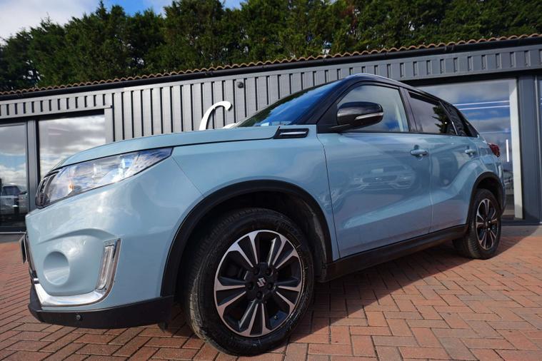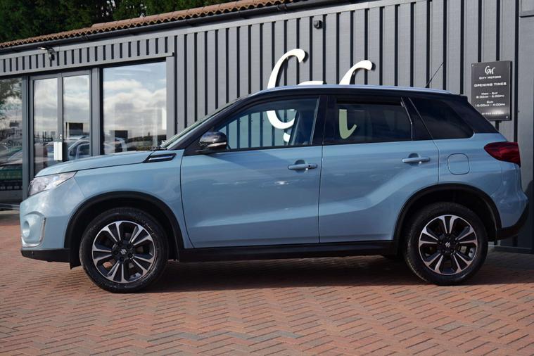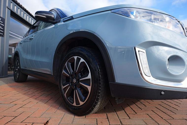 Introducing the Suzuki Vitara, a stunning blend of style, performance, and practicality. This particular model, the Suzuki Vitara 1.4 SZ5 Boosterjet 5dr, is a true gem, having been lovingly cared for by just two previous owners. Its striking Blue finish is sure to turn heads wherever you go, making a bold statement on the road. This Vitara has just been freshly serviced and has also had brand new brake disc and pads on the front, new rear wiper and a brand new tyre on the offside front!