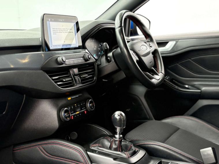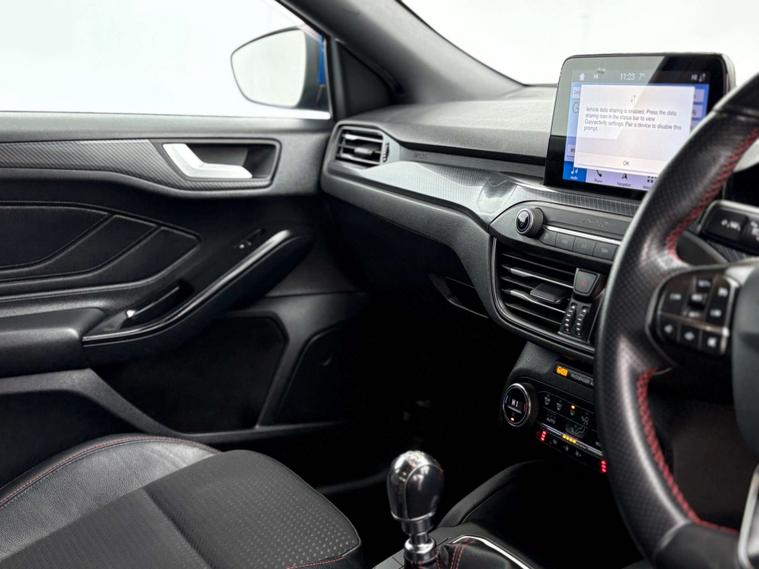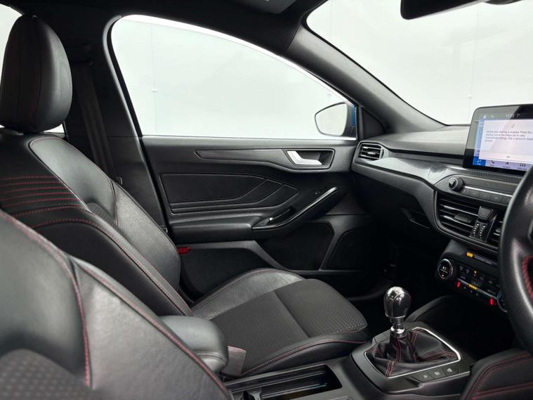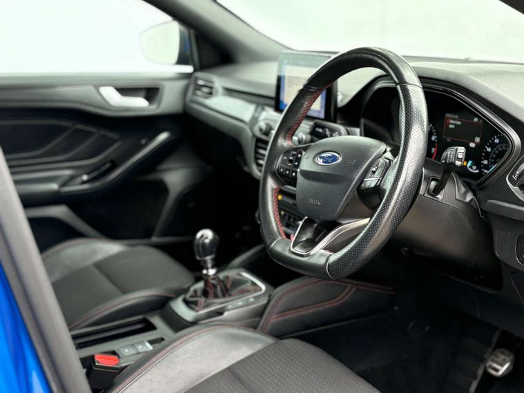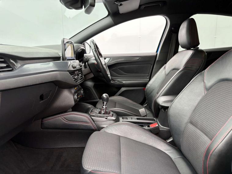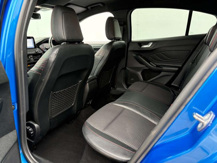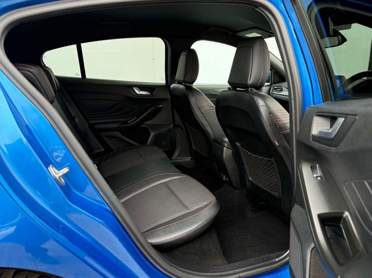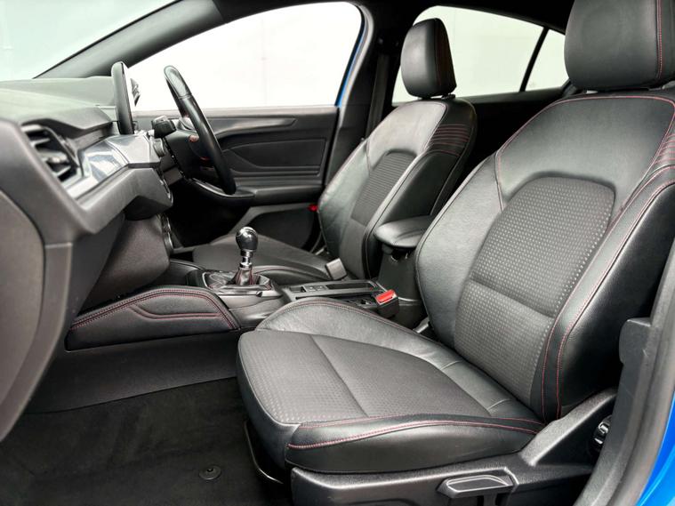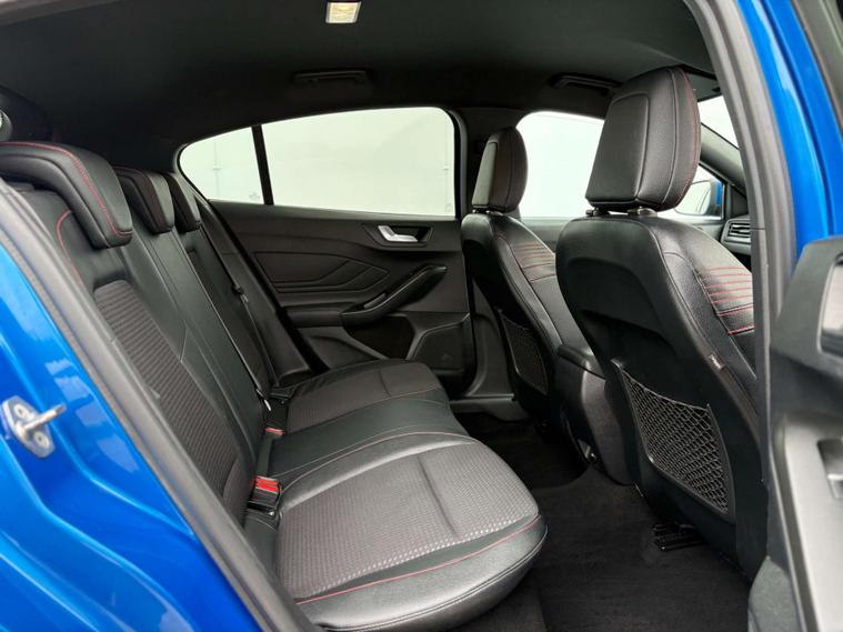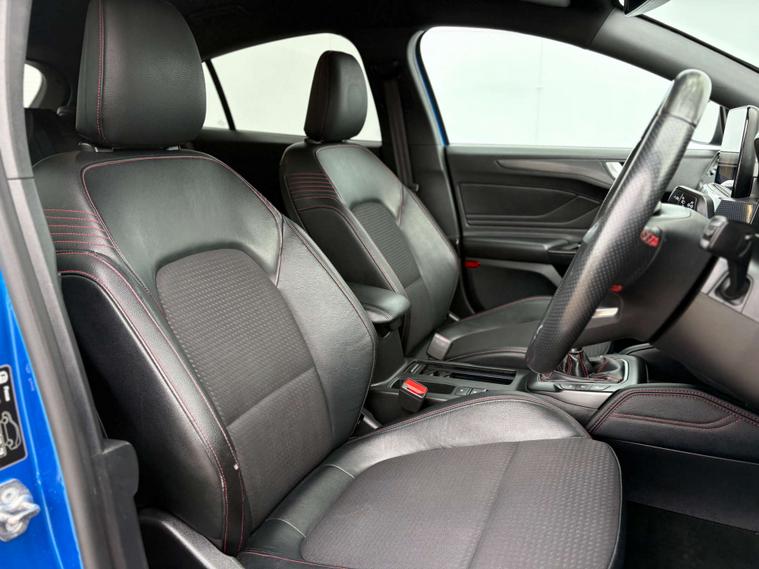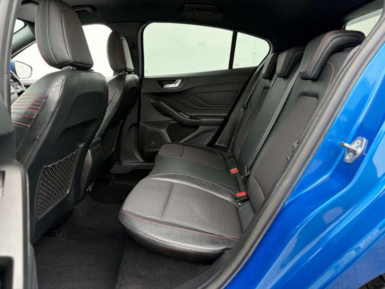 Dressed in a stunning Chrome Blue finish, the Ford Focus is a head-turner on any road. Its sleek design is complemented by the luxurious Foundry Partial Leather and Salerno Leather interior, featuring Vinyl Bolster in Ebony with striking Generic Red Stitching. This attention to detail not only enhances the aesthetic appeal but also ensures a comfortable and refined ride.