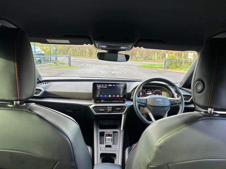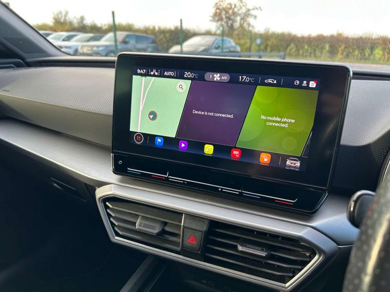 Experience ultimate convenience with three zone climate control, allowing personalised temperatures for all occupants. Navigating tight spaces is made effortless thanks to the Park Assist system, complete with front and rear parking sensors. Stay connected and entertained with Full Link smartphone integration, supporting wireless Apple CarPlay and wired Google Android Auto, alongside a handy wireless device charger. These features collectively enhance the driving experience, setting this SEAT Leon apart.