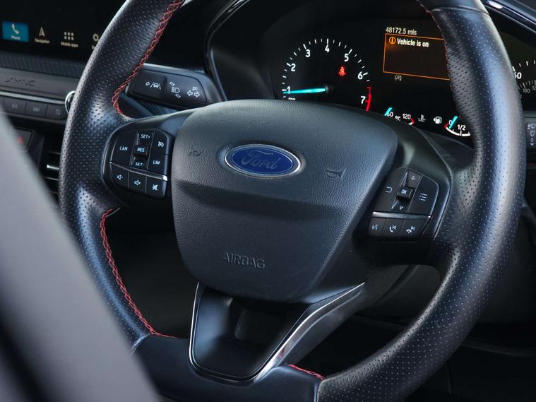 Equipped with Cruise Control with Speed Limiter, Front and Rear Parking Sensors, Ford SYNC 3 - Apple CarPlay, Android Auto, DAB Digital Radio, Navigation System, Bluetooth Interface with Audio Streaming, Electrically Heated and Power Foldable Exterior Mirrors with Side Indicators and Puddle Lights, Rear Privacy Glass, 18in Machined Finish, Red Brake Calipers, LED Daytime Running Lights, LED Front Fog Lights with Cornering Function, Keyless Start with Ford Power Start Button, Dual Zone Electronic Automatic Temperature, Front Heated Seats & Lane Keeping Aid with Lane Departure Warning.