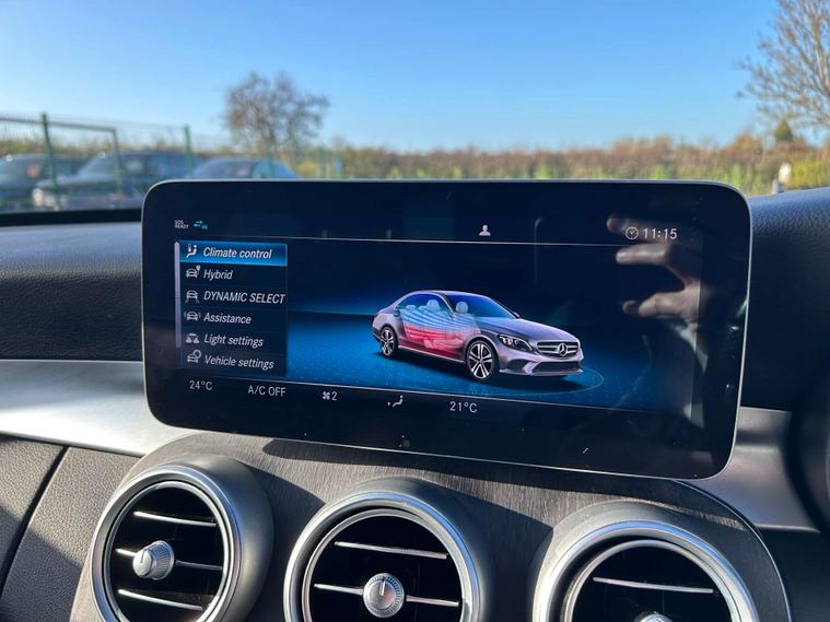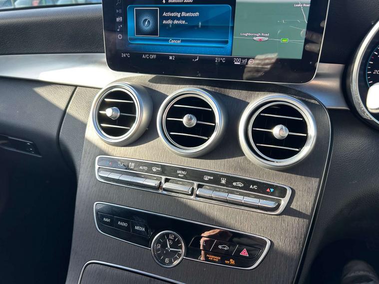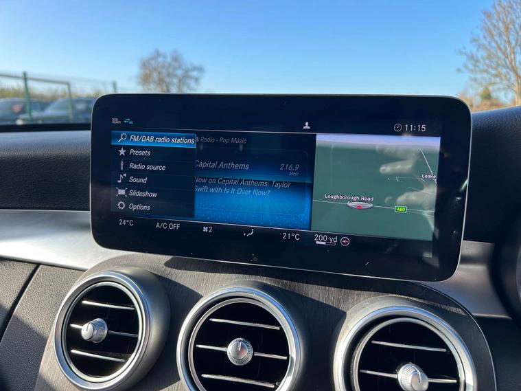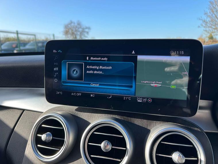 The AMG Line Edition trim enhances the vehicle's appeal with its sporty styling. Driving is made safer and more convenient with MULTIBEAM LED Headlights, which provide excellent illumination, and Active Parking Assist including PARKTRONIC, complete with front and rear parking sensors. These features collectively demonstrate a higher level of specification and thoughtful inclusion, setting this C Class apart from other similar vehicles on the market.