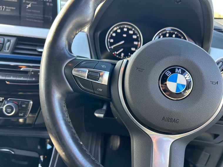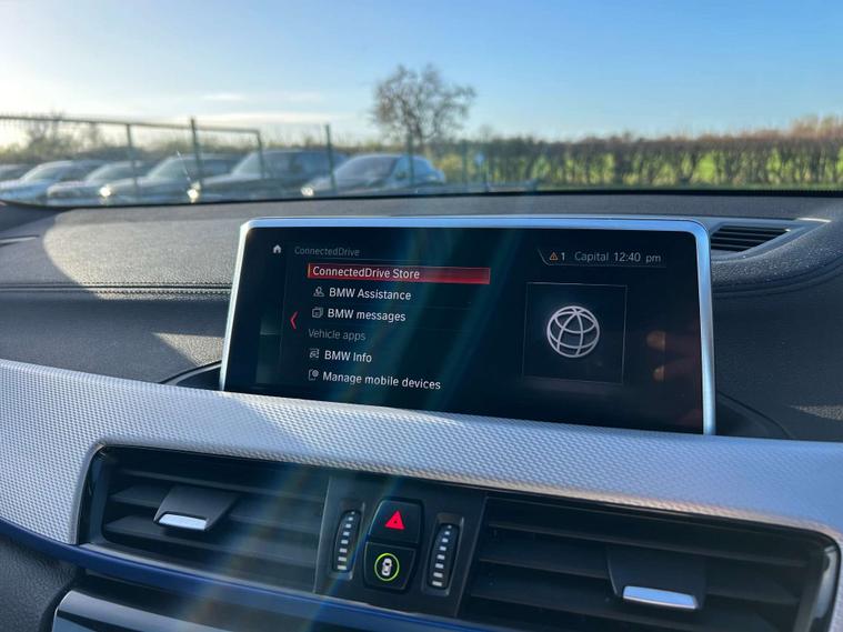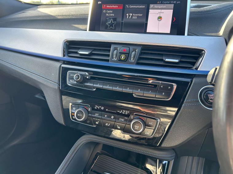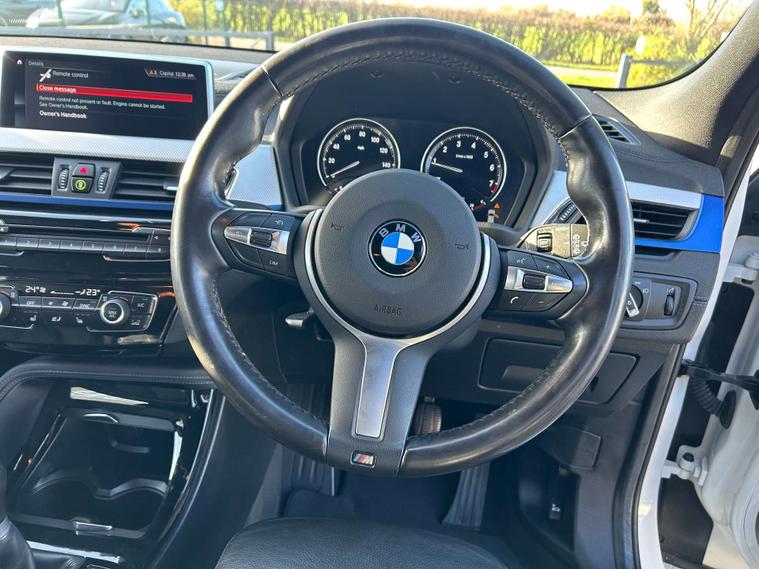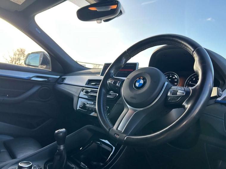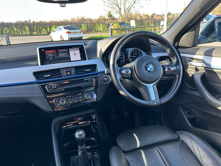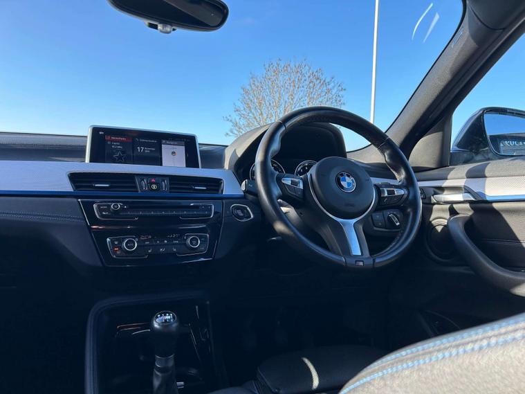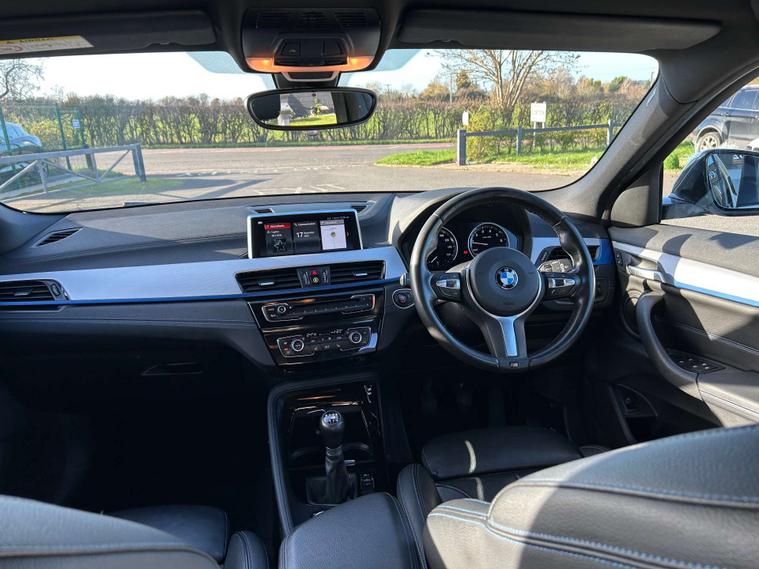 This 2019 BMW X2 18i M Sport is presented with a clear vehicle history check, offering peace of mind for its next owner. This stylish SUV features a 1.5 litre petrol engine and meets Euro 6 emission standards, contributing to its low CO2 emissions. Inside, you'll find a sophisticated M Sport trim with Perforated Dakota Leather in Black, accented by striking blue stitching that is echoed in the floor mats and the dashboard and centre console trim. Further enhancing the cabin's premium feel is the LED ambient lighting in the upper door trim and dashboard trim, complemented by velour floor mats.