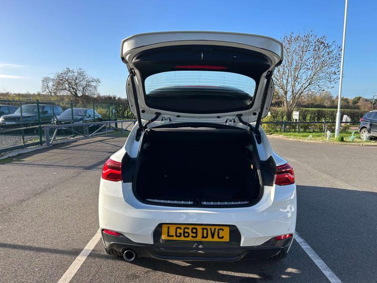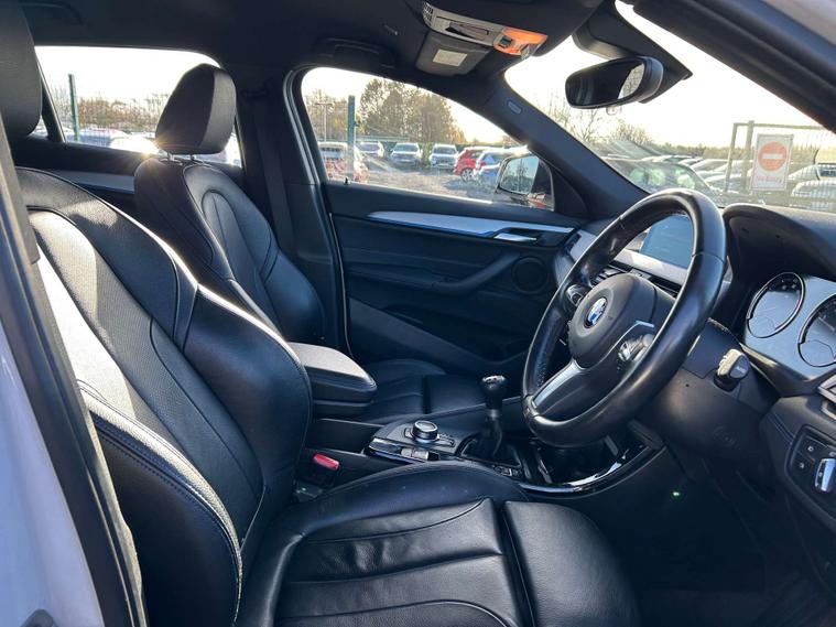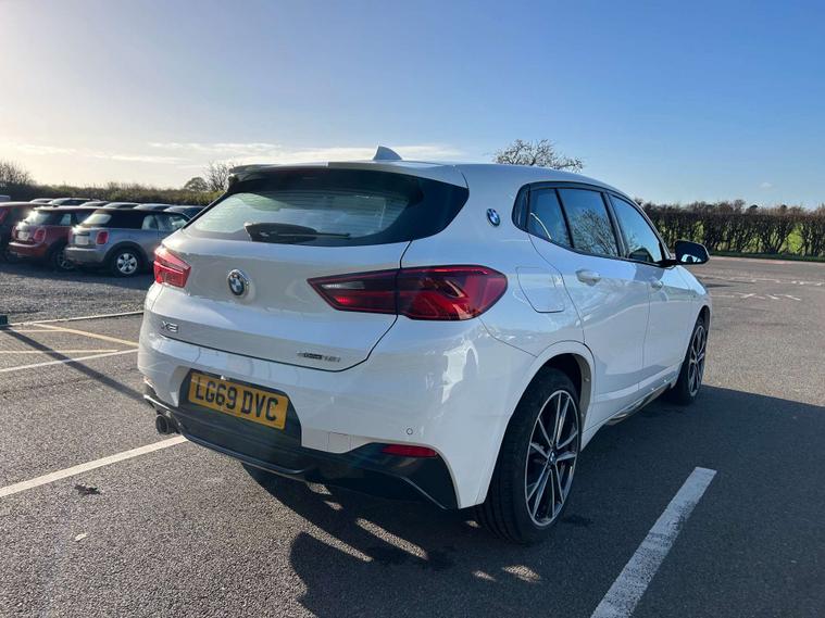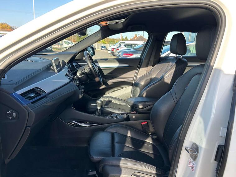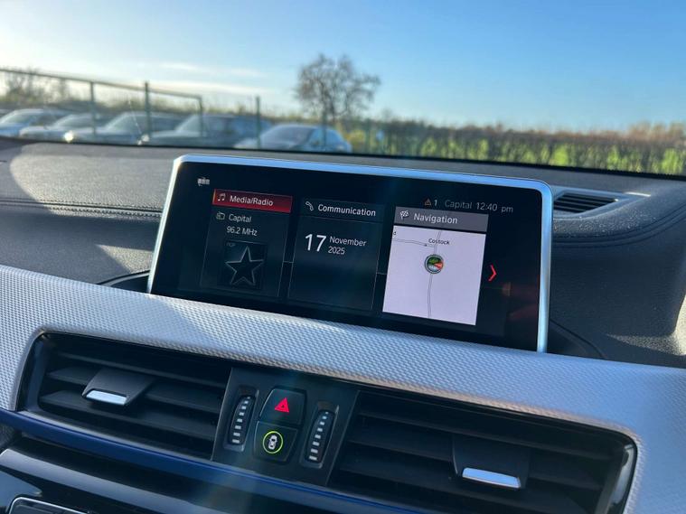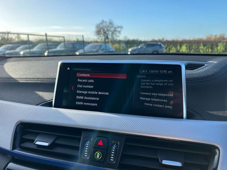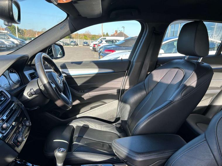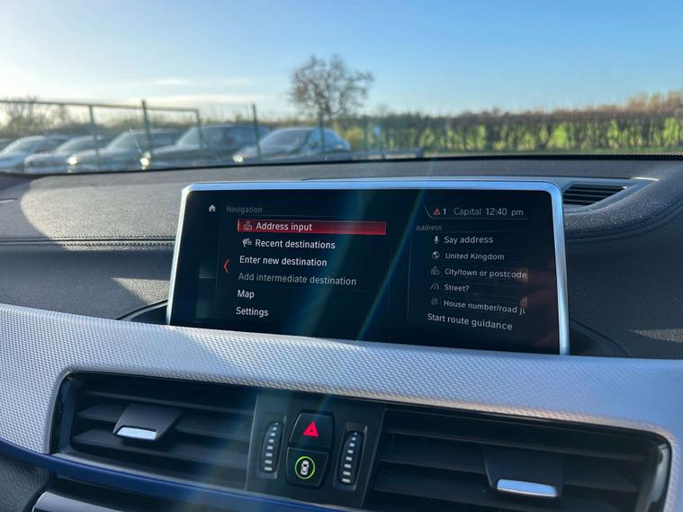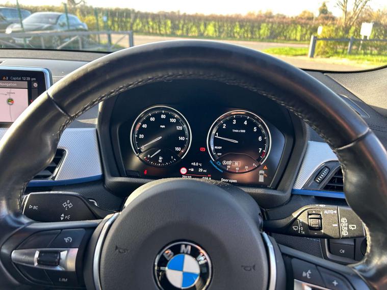 This 2019 BMW X2 18i M Sport is presented with a clear vehicle history check, offering peace of mind for its next owner. This stylish SUV features a 1.5 litre petrol engine and meets Euro 6 emission standards, contributing to its low CO2 emissions. Inside, you'll find a sophisticated M Sport trim with Perforated Dakota Leather in Black, accented by striking blue stitching that is echoed in the floor mats and the dashboard and centre console trim. Further enhancing the cabin's premium feel is the LED ambient lighting in the upper door trim and dashboard trim, complemented by velour floor mats.