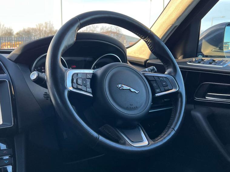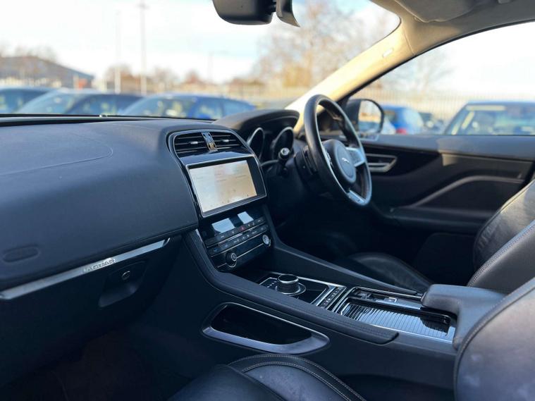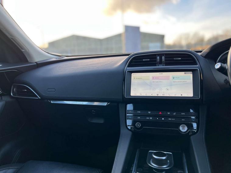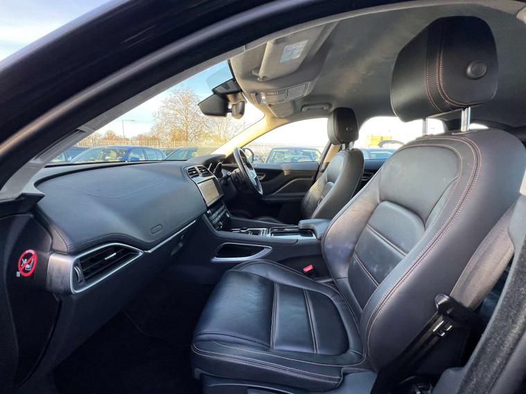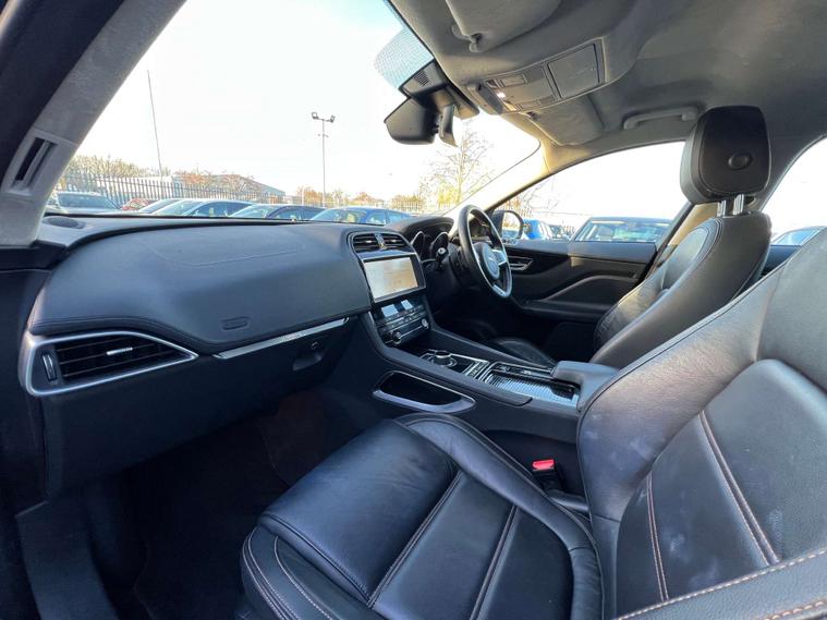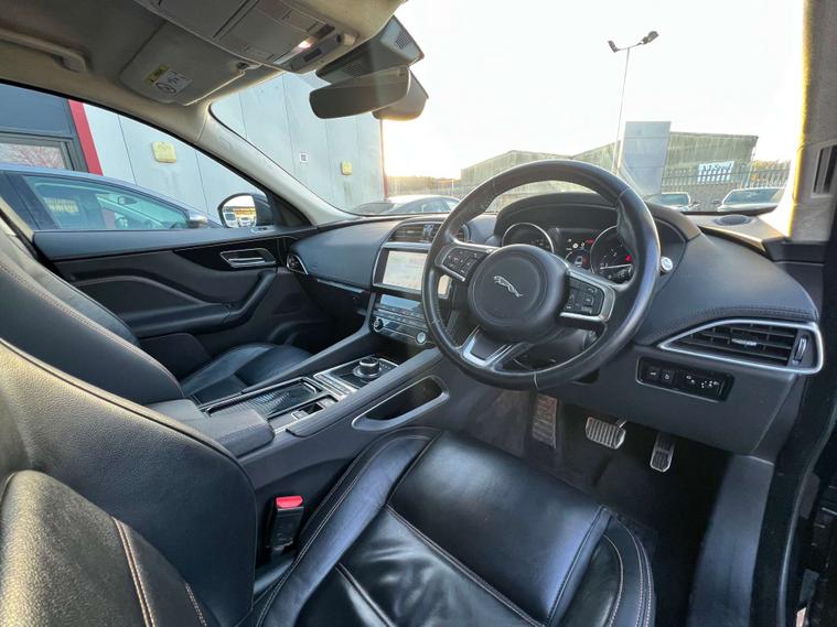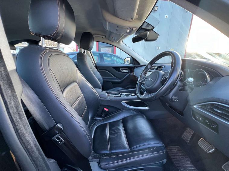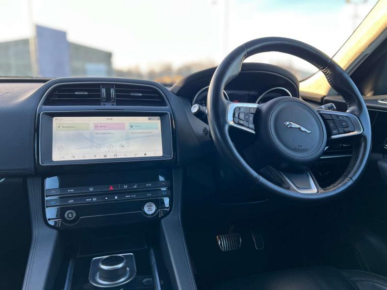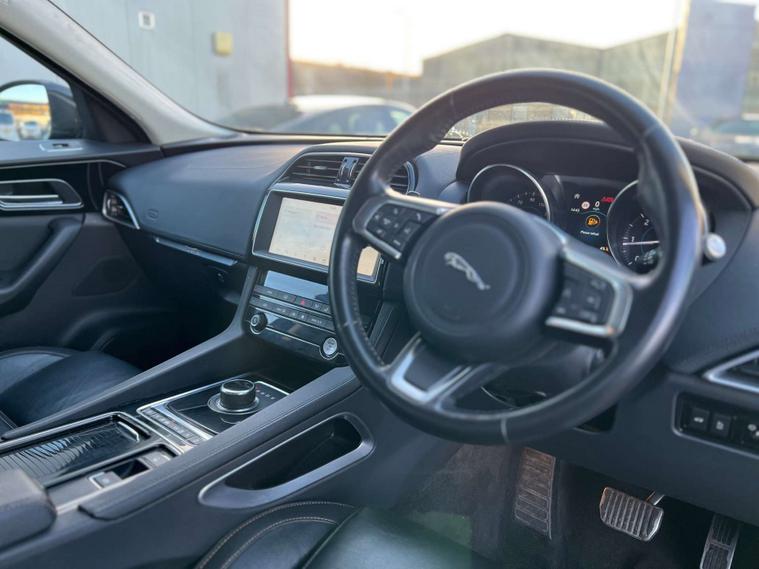 Finished in a sleek Black exterior, the Jaguar F-Pace exudes sophistication and style. The powerful 2.0 diesel engine delivers an impressive 180 ps, ensuring a smooth and exhilarating driving experience every time you hit the road.
