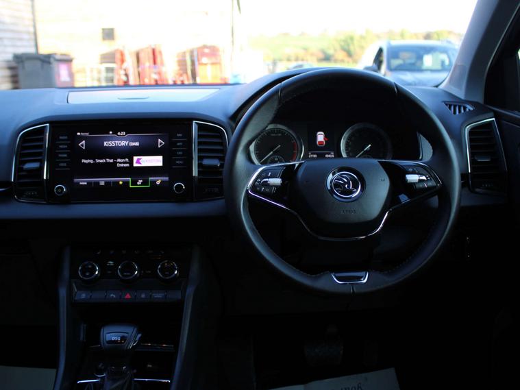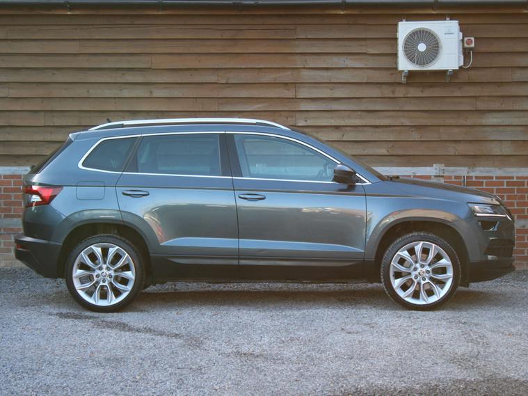 ***FOR VIEWINGS AND TEST DRIVES CALL US ON 01747692736 TO BOOK AN APPOINTMENT***One owner low mileage Karoq SE L automatic fitted with Skoda's 1.5 litre turbo petrol ULEZ compliant engine producing impressive power of 150 BHP and great fuel economy finished in grey metallic with equipment including half leather and suede heated seats with heated fuction, touch screen media unit with sat nav, DAB radio and apple car play resulting in the ability to mirror the apps from your Iphone onto the car media screen including Google maps and Spotify, media connections, bluetooth, parking sensors, air conditioning, auto lights, cruise control, roof rails, alloy wheels, removable rear seats and more, 1 owner, 26300 miles, service history, high up driving position with easy access in and out of the cockpit***PART EXCHANGE AVAILABLE***USE THE FINANCE CALCULATOR ON OUR WEBSITE dealer's website AND QUOTE YOURSELF A MONTHLY PAYMENT FIGURE TODAY WITH ZERO DEPOSITS AVAILABLE***