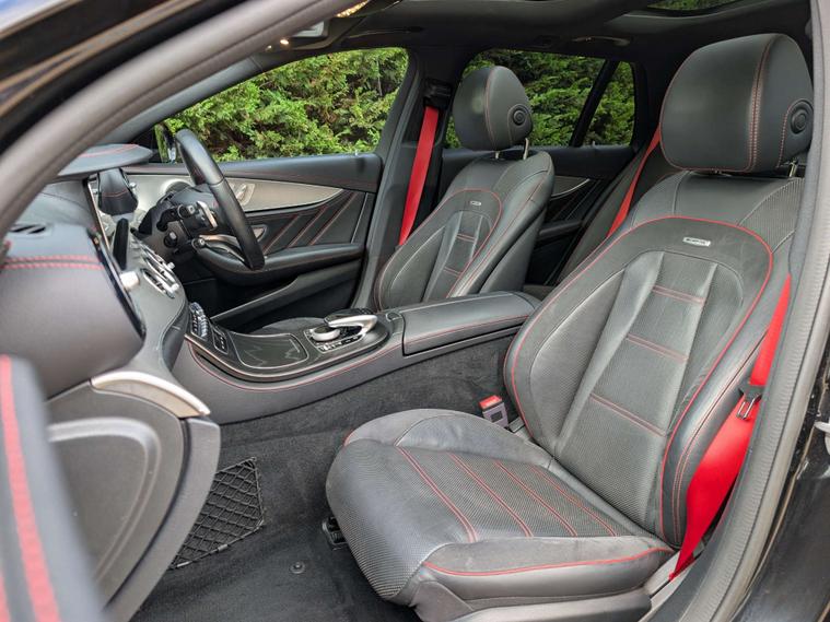 12 Assured Vehicle. Presented in black over black leather with red contrast stitching. The E43 AMG is a stunning sports estate, combining AMG driving performance with family practicality, reliability, and safety. This stunning example has been provided with full service history from Mercedes including 7 service visits, and specification including panoramic roof, 360 parking cameras, heated electric memory seats, Bluetooth connectivity, folding mirrors, power tailgate, plus much more. Please enquire for more details. Experian checked, nationwide delivery available. £149.00 Preparation Fee applies on purchase. Please enquire ahead of arrival, as much of our stock is kept off-site at our storage centre, and we would like ensure it is available to view during your visit.