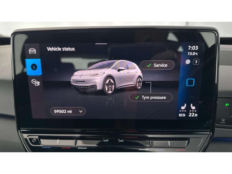 This 2022 Volkswagen ID.3 Pro Performance Life is a fantastic example of electric motoring, having had only one owner since new. As an electric vehicle, it offers a smooth and quiet driving experience, powered by a 62 kWh battery that provides a maximum range of 265 miles when new. This model comes with the Life trim and includes the desirable Assistance Pack, featuring Keyless Entry and Parking Assistance with a Rear Camera, as well as the Comfort Package, which adds heated seats and a heated steering wheel for those colder days. You'll also benefit from front and rear parking sensors, a 1 Zone Climatronic system for effortless climate control, and All LED Headlights with reflector technology for excellent visibility.