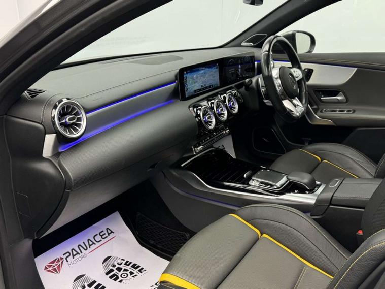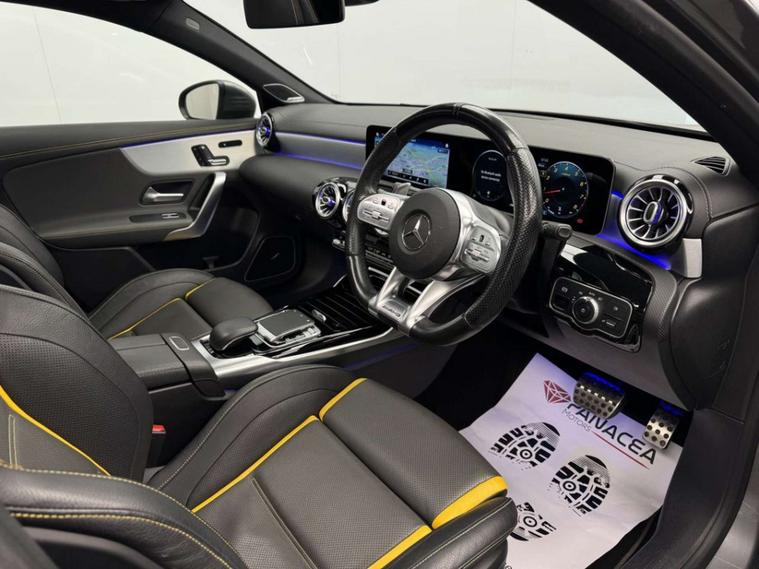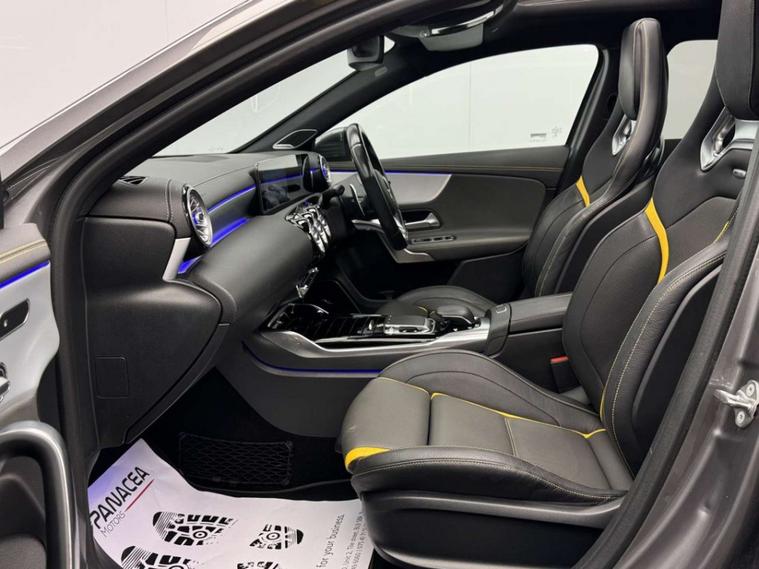 MERCEDES BENZ A-CLASS A35 AMG LINE HATCHBACK 5DR PETROL 7G-DCT EURO 6 224BHP FINISHED IN EXCLUSIVE MOUNTAIN GREY WITH FULL LEATHER INTERIOR. THIS HIGH SPECIFICATION EXAMPLE BOASTS 1 PREVIOUS OWNER FROM NEW AND A FULL SERVICE RECORD ALONG SIDE THE A45S BODY KIT THIS VEHICLE INCLUDES | TILT AND SLIDE PANORAMIC GLASS ROOF | FRONT BUCKET SEATS | UPGRADED BURMISTER SOUND SYSTEM | VIRTUAL DASHBOARD | UPGRADED 19INCH AMG ALLOYS | MULTICOLOUR AMBIENT LIGHTING | LAIN ASSIST | REVERSE CAMERA | REAR PARKING SENSORS | A45S BODY KIT | REAR SPOILER | UPGRADED FRONT GRILL | KEYLESS GO | BLACK STYLING PACK | APPLE CAR PLAY | DAB | CRUISE CONTROL | AMG AERO PACK | BE FAST. - A RARE FIND IN THIS SPECIFICATION AND NOT TO BE MISSED.... Further to this all vehicles are provided with a comprehensive AA Dealer Care Extended Guarantee and Full AA Roadside, Recovery and Home Start & Onward travel (where not covered under the manufactures own warranty). HPI checks are carried out making sure all cars are clear from any concern, offering you total piece of mind. Every vehicle's mileage is fully guaranteed as genuine. Included with your purchase you will receive a minimum of 3 months Warranty with the option to extended and tailor your package at the time of purchase. Our vehicles are supplied fully valeted to the highest standards and include up to date servicing with a minimum of 9 months MOT. We are regulated by the FCA and can provide a range of flexible finance options, tailoring a package to your needs. We aim to a make the numbers work for you, including 0% deposit deals! We also offer a selection of other products for our customers to protect their investment. These include Williams Ceramic coating, insurance backed policies to protect your investment from financial loss and protection to cosmetic damage. To avoid disappointment please call 01616237517 to arrange a test drive before travelling.