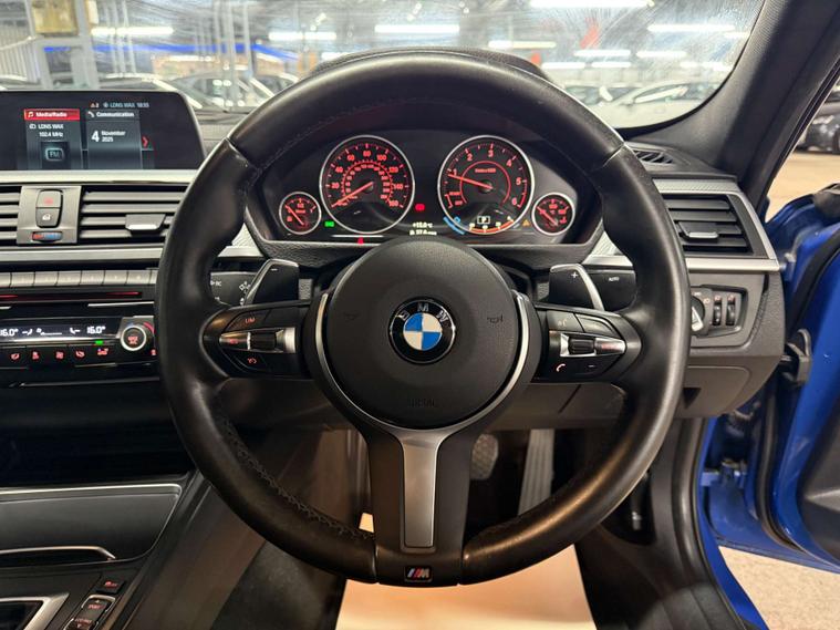 Dressed in a captivating shade of Blue, this Bmw 3 Series exudes sophistication and style, turning heads wherever it goes. The exterior is complemented by the luxurious Dakota Leather interior, featuring Black with Blue Highlights, creating a harmonious blend of comfort and aesthetics that is simply irresistible.