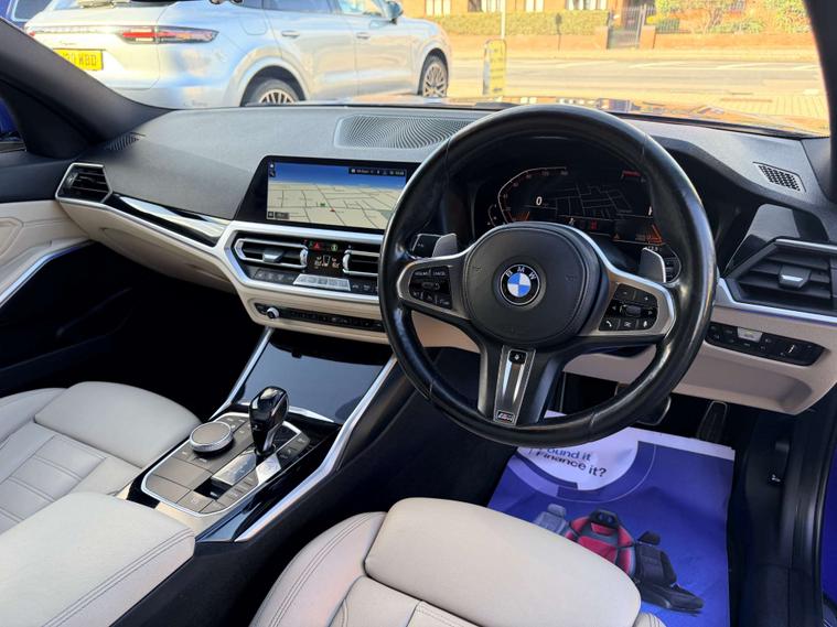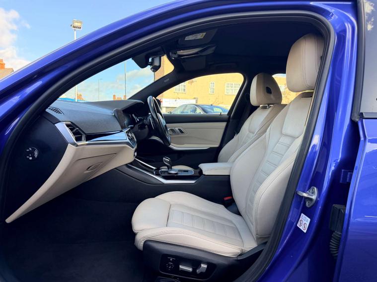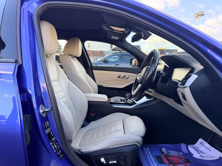 Dressed in the striking Portimao Blue, this Bmw 3 Series is more than just a car; it's a statement. The exterior's bold hue is perfectly complemented by the sophisticated Interior Trim – BMW Individual – Piano Black, creating a seamless blend of style and luxury.