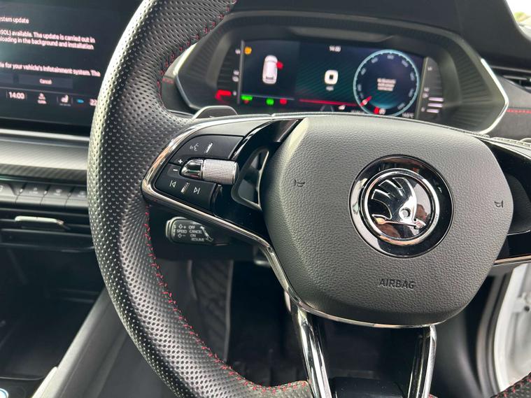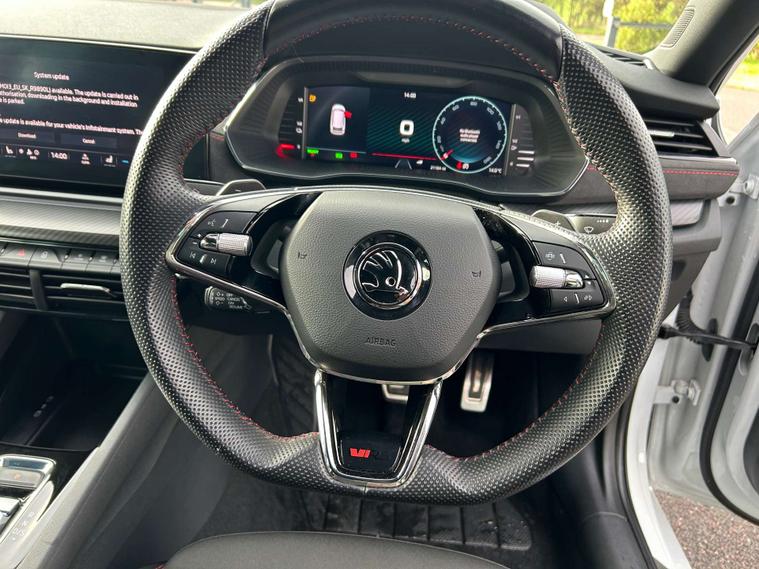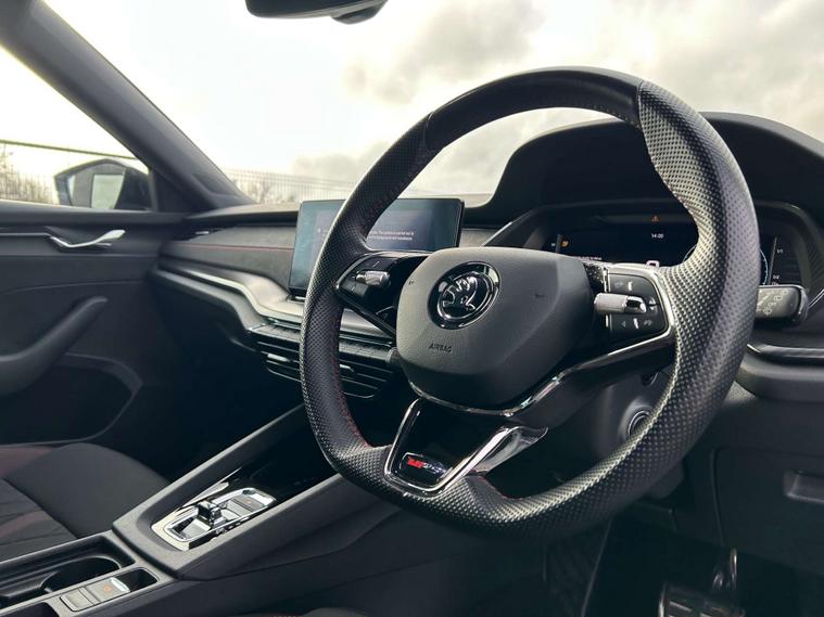 This 2024 Skoda Octavia TSI iV vRS is a superb example, having had only one owner from new and boasting a full service history. This striking plug in hybrid model combines a 1.4 litre petrol engine with electric power, meeting the Euro 6 emission standards. It comes equipped with a host of desirable features, including Bluetooth connectivity, Climatronic dual zone air conditioning for personalised comfort, and automatic headlights activated by light and rain sensors. For effortless journeys, it features Adaptive Cruise Control, and the Smartlink system ensures seamless integration with your smartphone, offering Android Auto and MirrorLink functionality.