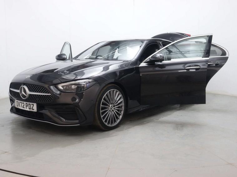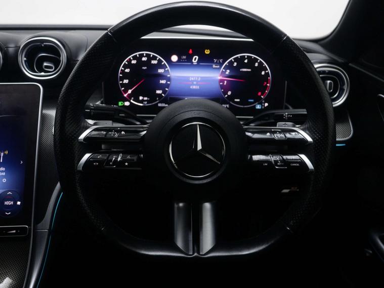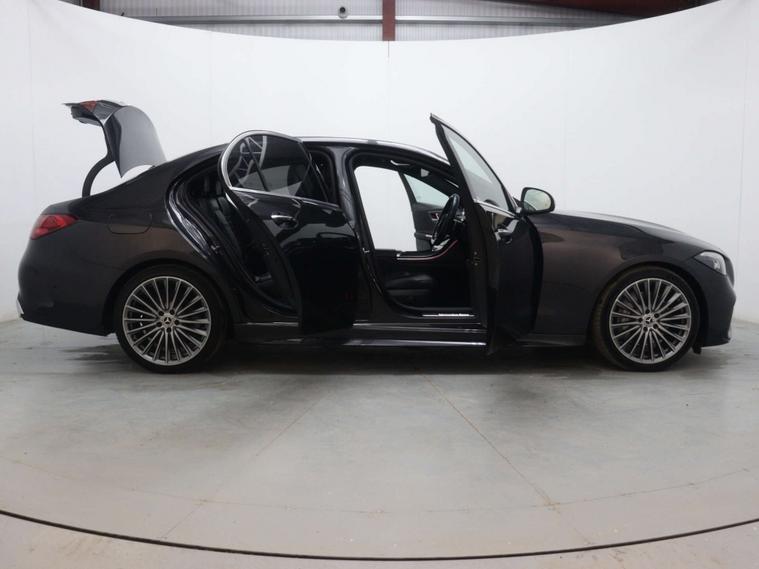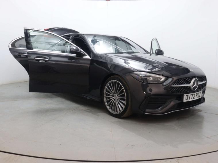 Introducing the stunning Mercedes-Benz C-Class 1.5 C 200 AMG Line Premium MHEV Auto 4dr. This exceptional vehicle boasts a sleek Grey finish that exudes sophistication and style.