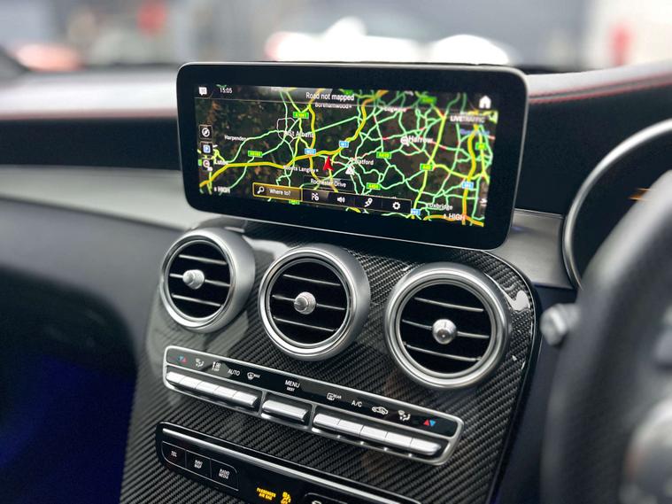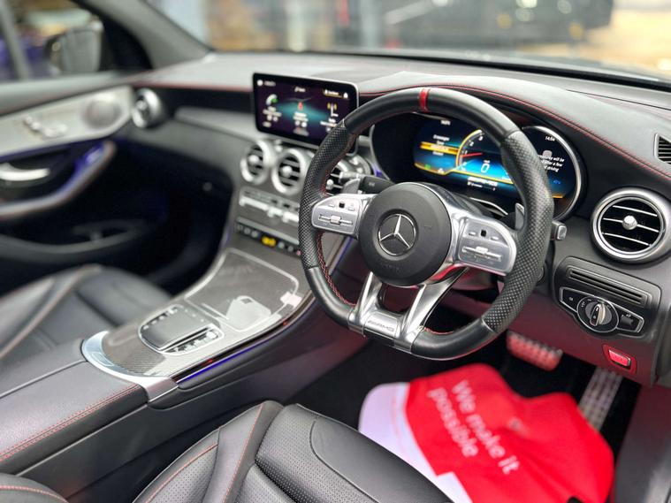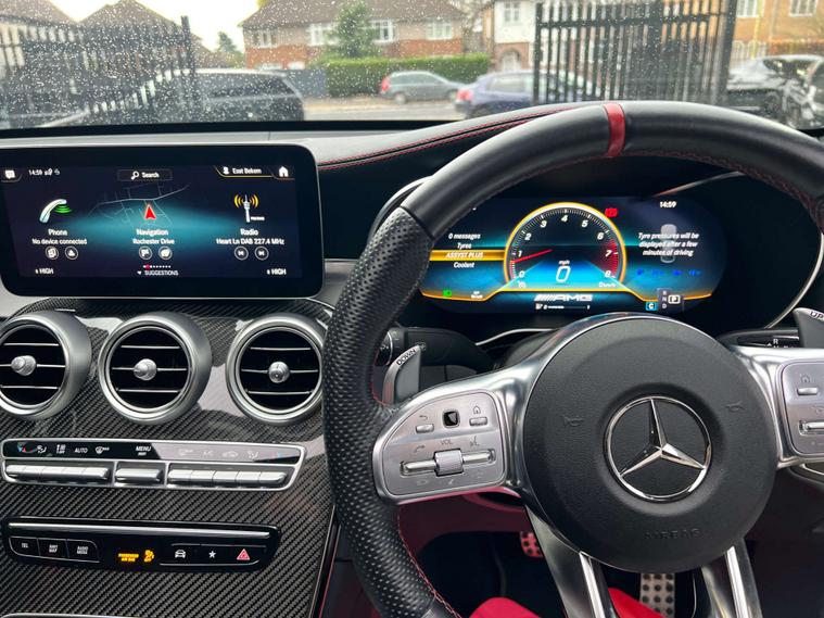 GREAT SPEC + BODYKIT + DIGITAL DASH COCKPIT + SWITCHABLE AMG SPORTS EXHAUST + CARBON INTERIOR TRIM + BURMEISTER SOUND SYSTEM + 360 SURROUND CAMERAS + SAT NAV + APPLE PLAY + BLUETOOTH + DAB RADIO + BLACK ALLOY WHEELS + RED BRAKE CALIPERS + LED LIGHTS + FULL BLACK LEATHER / RED STITCHING/ RED SEAT BELTS + FRONT & REAR CLIMATE CONTROL + KEYLESS ENTRY/ PUSH START BUTTON + ELECTRIC FOLDING MIRRORS + REAR SPOILER + BLACKOUT EXTERIOR STYLING + BLACK GRILLS/ BADGES & SIDE STEPS + PRIVACY GLASS + BALANCE OF MERCEDES WARRANTY & ROADSIDE ASSIST REMAINING