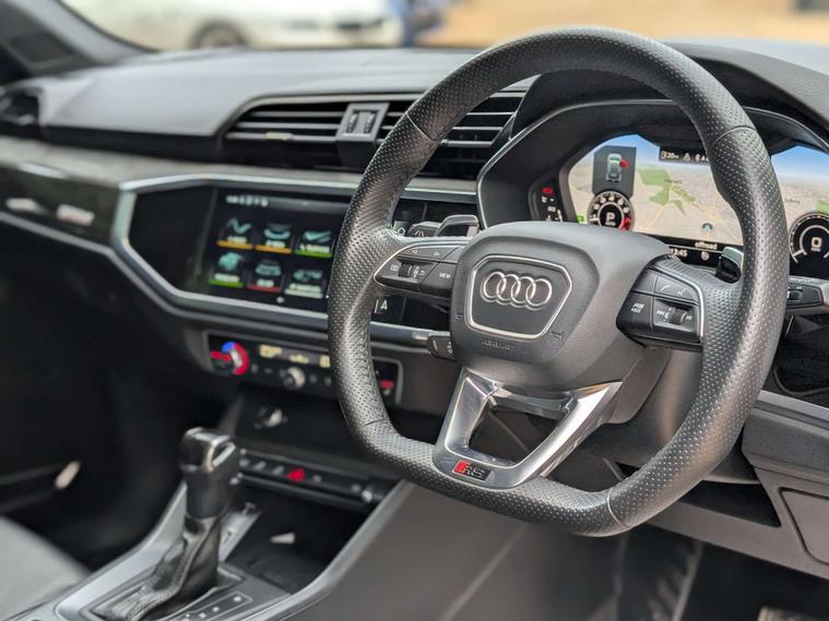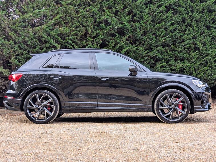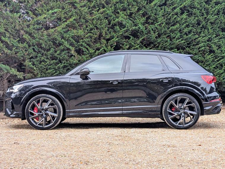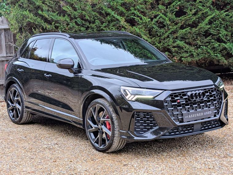 12 Assured Vehicle. Presented in black with black quilted leather. The Audi RS Q3 is a high performance luxury SUV, with Audi's legendary 5-cylinder engine at it's heart. This stunning example has been provided in the highest possible Vorsprung specification. Equipment includes panoramic roof, 360 parking cameras, Apple CarPlay & Android Auto connectivity, heated seats, Bang & Olufsen sound system, plus much more. Please enquire for more details. Experian checked, nationwide delivery available. £149.00 Preparation Fee applies on purchase. Please enquire ahead of arrival, as much of our stock is kept off-site at our storage centre, and we would like ensure it is available to view during your visit.