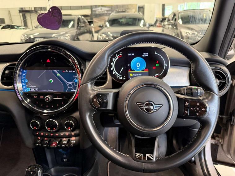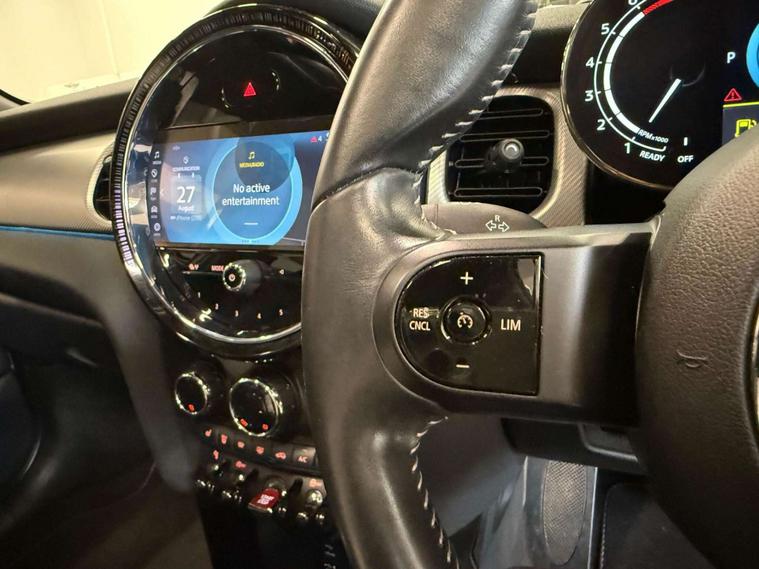 This 2021 MINI Hatch Cooper Exclusive boasts a full dealership service history, with its last service completed on 8th November 2024 at 19, 439 miles, ensuring excellent provenance. This stylish hatchback is powered by a 1.5 litre petrol engine, meeting Euro 6 emissions standards, and comes with a 6 month warranty for your peace of mind. It has had only one owner since new. Notable features include the Navigation Plus Pack, which incorporates Bluetooth connectivity and a Head Up Display, alongside the Comfort Plus Pack, offering keyless entry, rear parking assistance with a camera and sensors, and heated seats. Enjoy the open air with the panoramic glass sunroof, and stay comfortable with manual air conditioning and bright LED headlights.